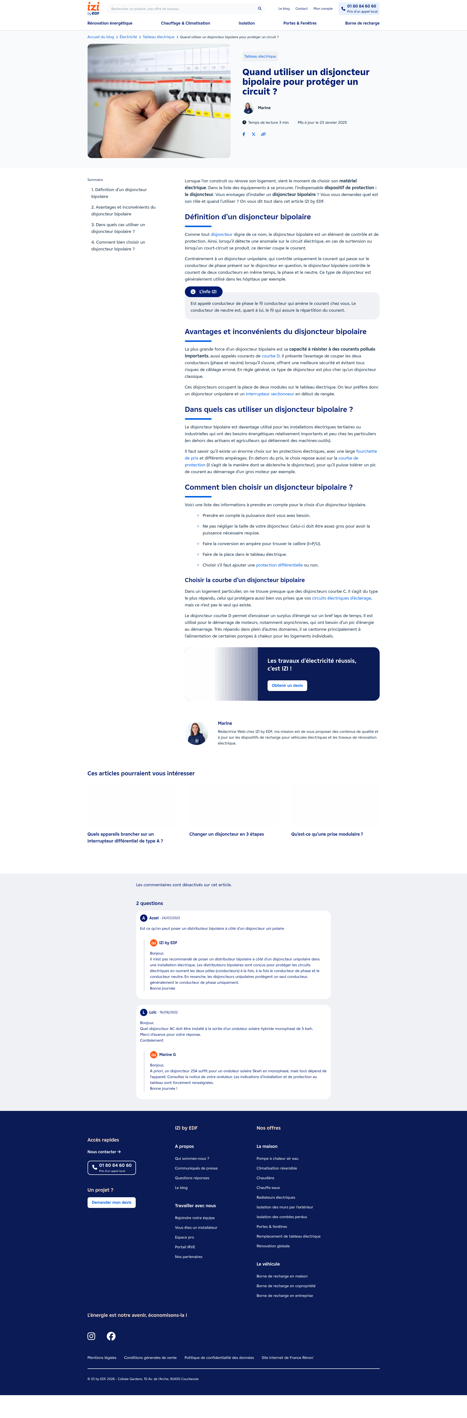 Pourquoi utiliser un disjoncteur bipolaire ? - IZI by EDFUtiliser un disjoncteur bipolaire vous permet de protéger des circuits électriques de forte puissance. Voici ce qu'il faut retenir.PNGPDF