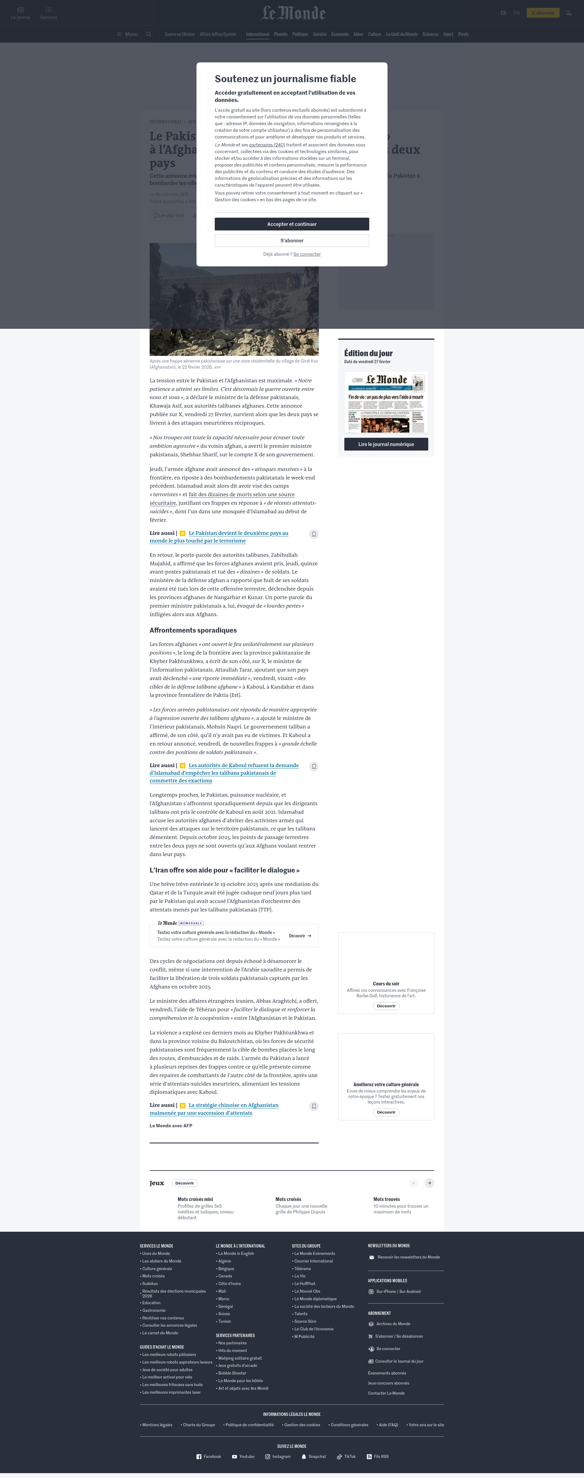 Le Pakistan déclare une « guerre ouverte » à l’Afghanistan après des frappes entre les deux paysCette annonce intervient après une offensive afghane lancée jeudi à sa frontière, qui a conduit le Pakistan à bombarder les villes de Kaboul et Kandahar en représailles.PNGPDF