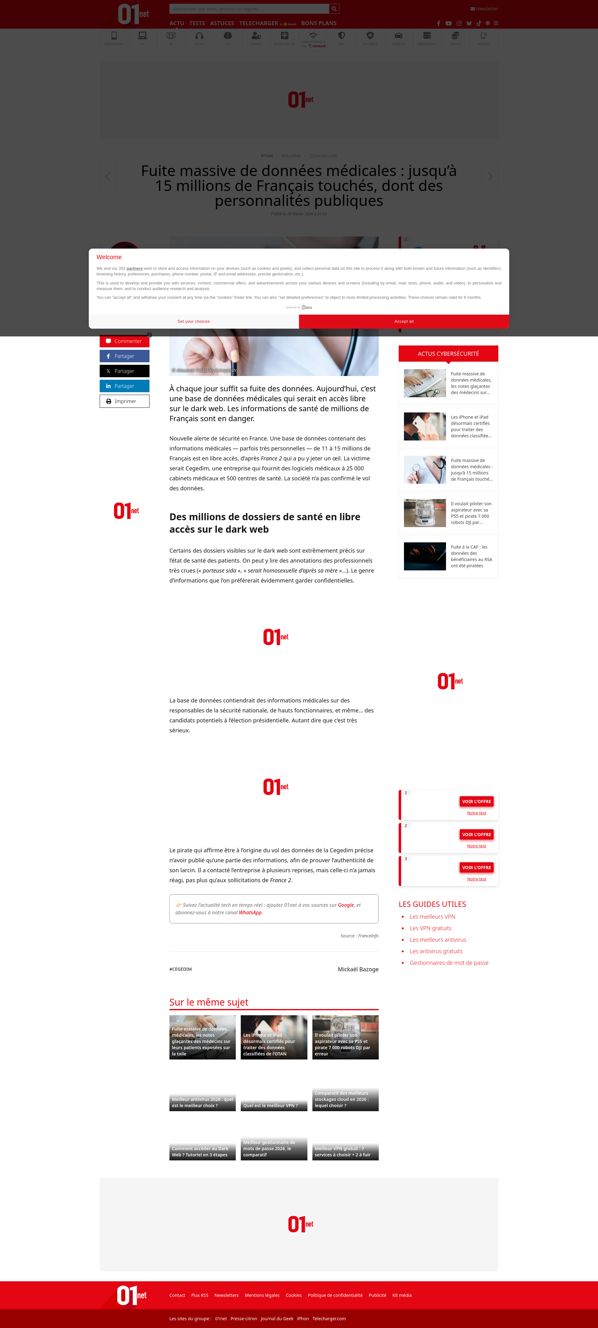 Fuite massive de données médicales : jusqu’à 15 millions de Français touchés, dont des personnalités publiquesÀ chaque jour suffit sa fuite des données. Aujourd'hui, c'est une base de données médicales qui serait en accès libre sur le dark web. Les informations de santé de millions de Français sont en danger.PNGPDF