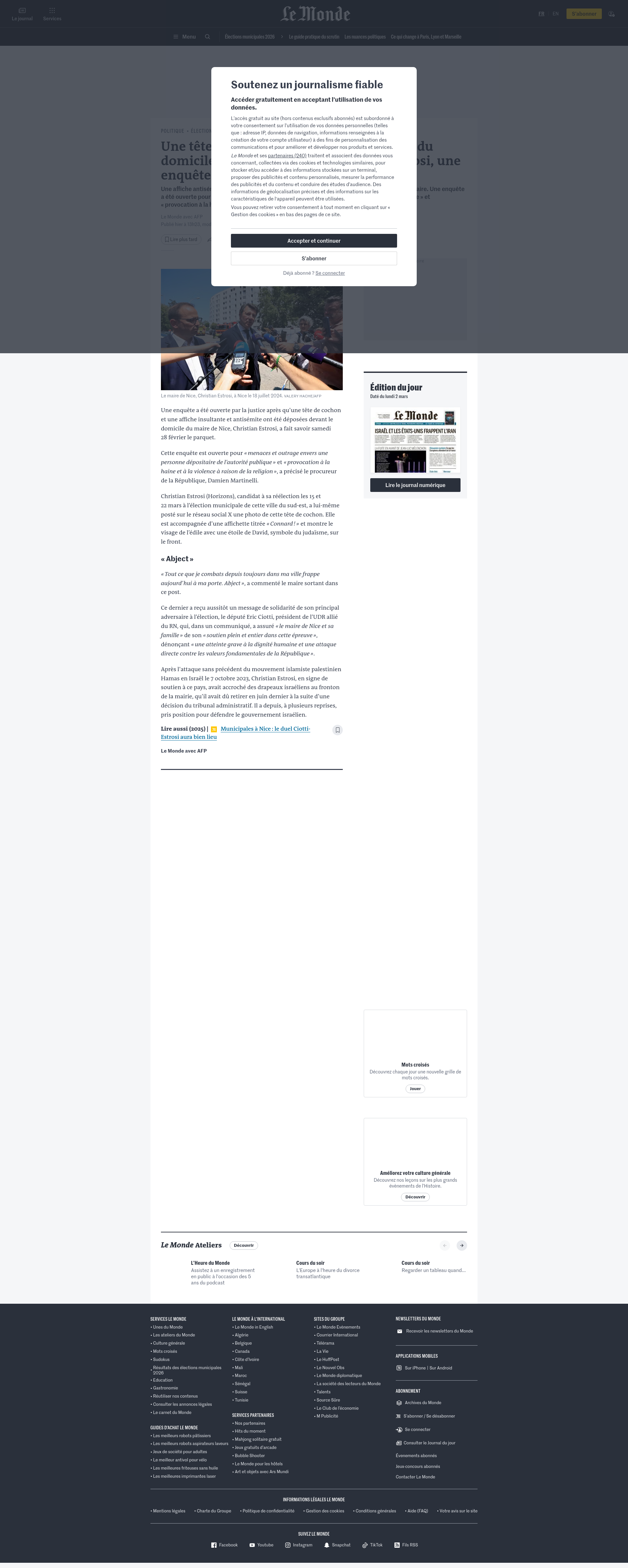 Insolite : Christian Estrosi fait une apparition surprise au Carnaval… sous la grosse tête de Jacques MédecinNice Le maire de Nice Christian Estrosi, en pleine campagne pour sa réélection, a fait une apparition remarquée ce dimanche 22 février au corso carnavalesque… sous la grosse tête de l’ancien maire controversé Jacques Médecin.PNGPDF