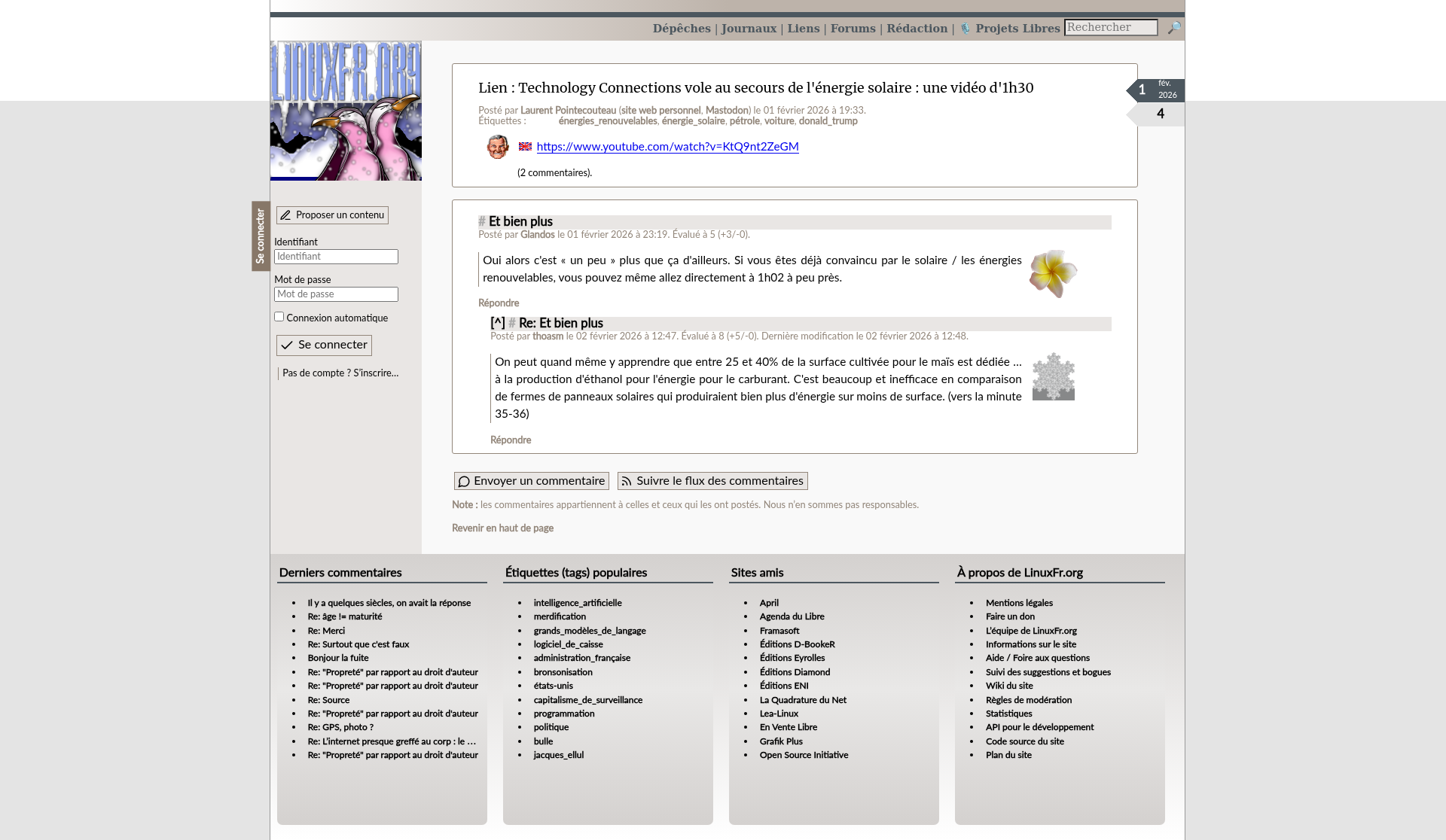Technology Connections vole au secours de l'énergie solaire : une vidéo d'1h30 - LinuxFr.orgTechnology Connections vole au secours de l'énergie solaire : une vidéo d'1h30PNGPDF