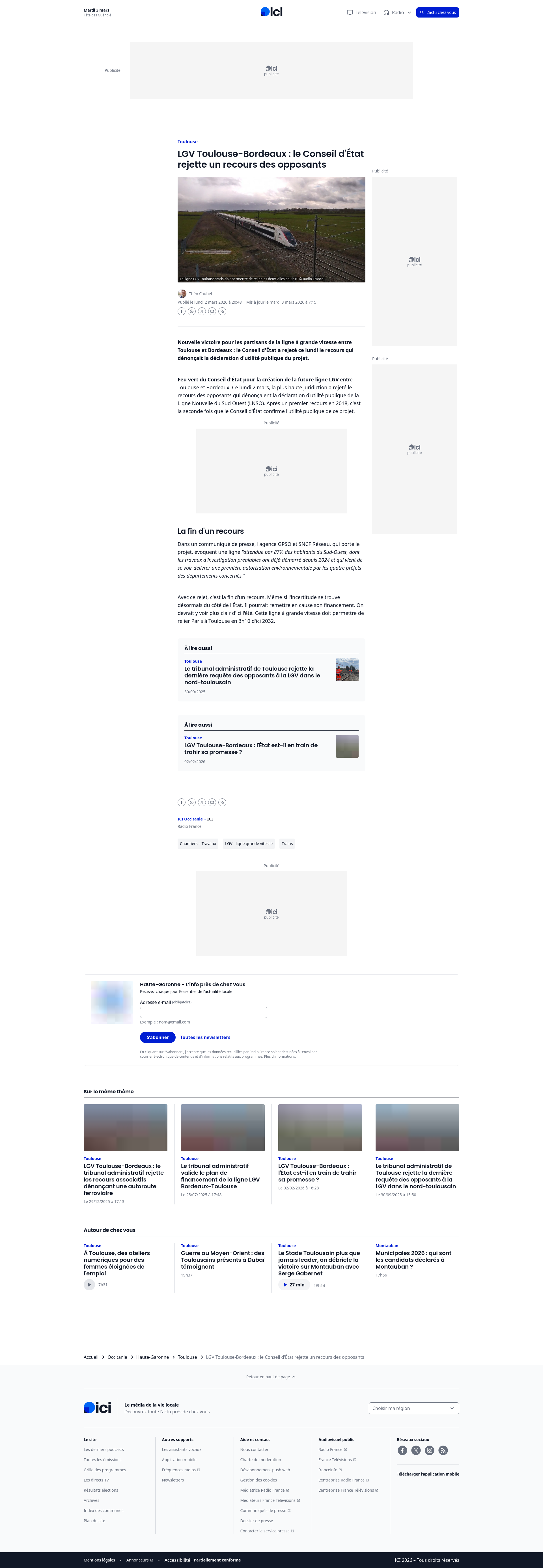 LGV Toulouse-Bordeaux : le Conseil d'État rejette un recours des opposants - ICINouvelle victoire pour les partisans de la ligne à grande vitesse entre Toulouse et Bordeaux : le Conseil d'État a rejeté ce lundi le recours qui dénonçait la déclaration d'utilité publique du projet.PNGPDF