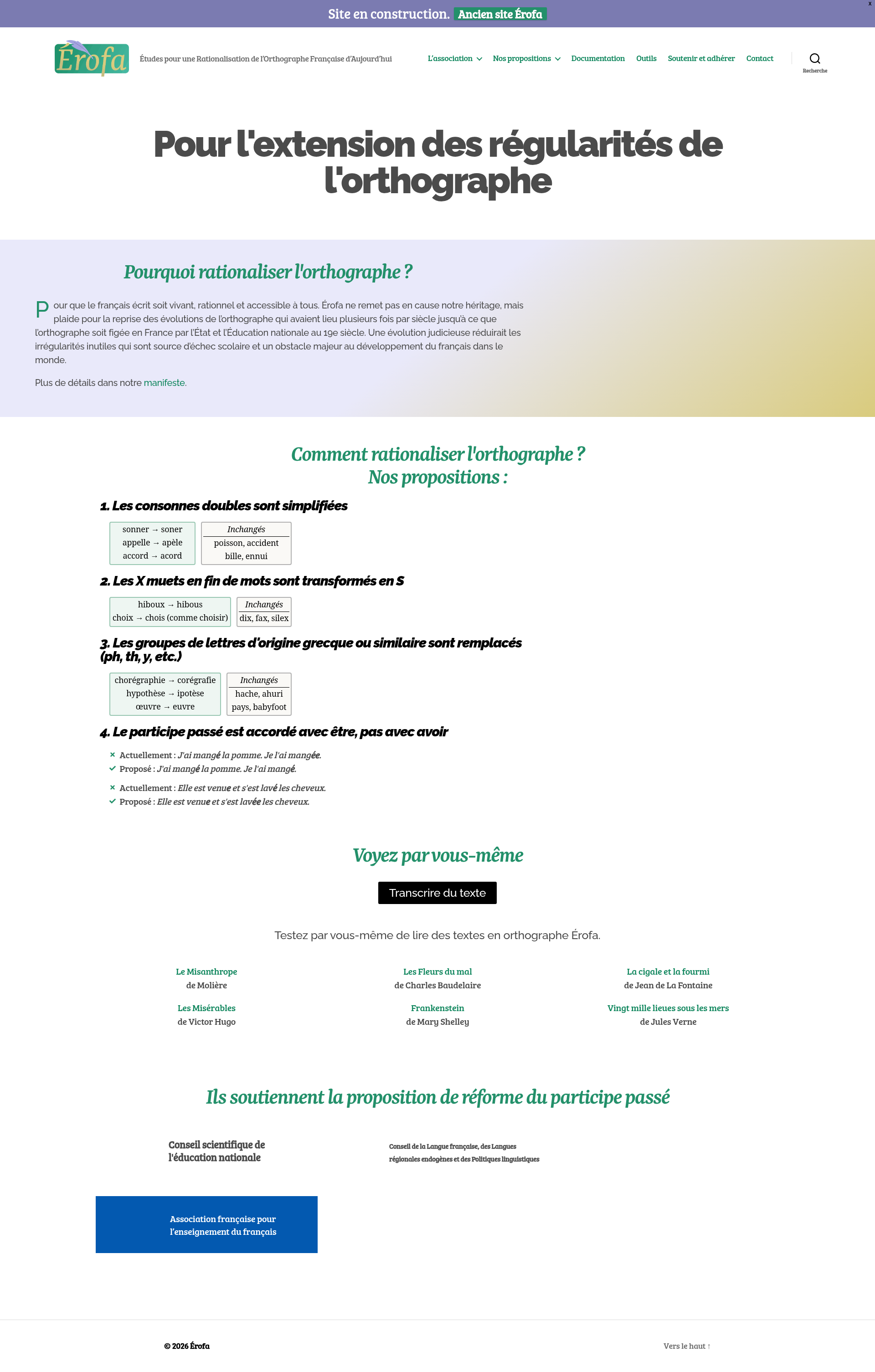 Érofa - Rationalisons l'orthographe !L'association Érofa propose 4 règles simples et générales pour réformer l'orthographe du français, pour la rendre plus rationnelle.PNGPDF