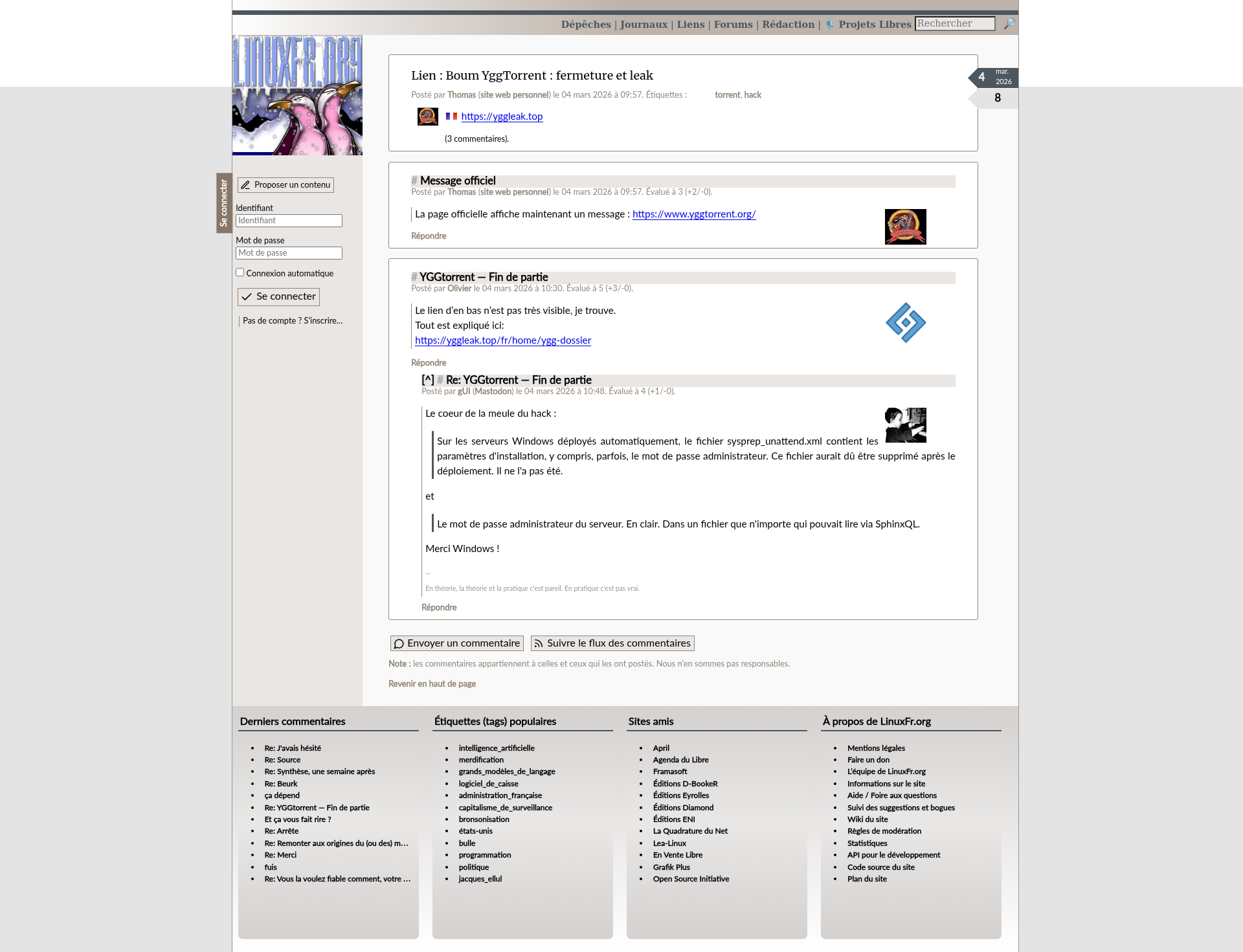Boum YggTorrent : fermeture et leak - LinuxFr.orgBoum YggTorrent : fermeture et leakPNGPDF