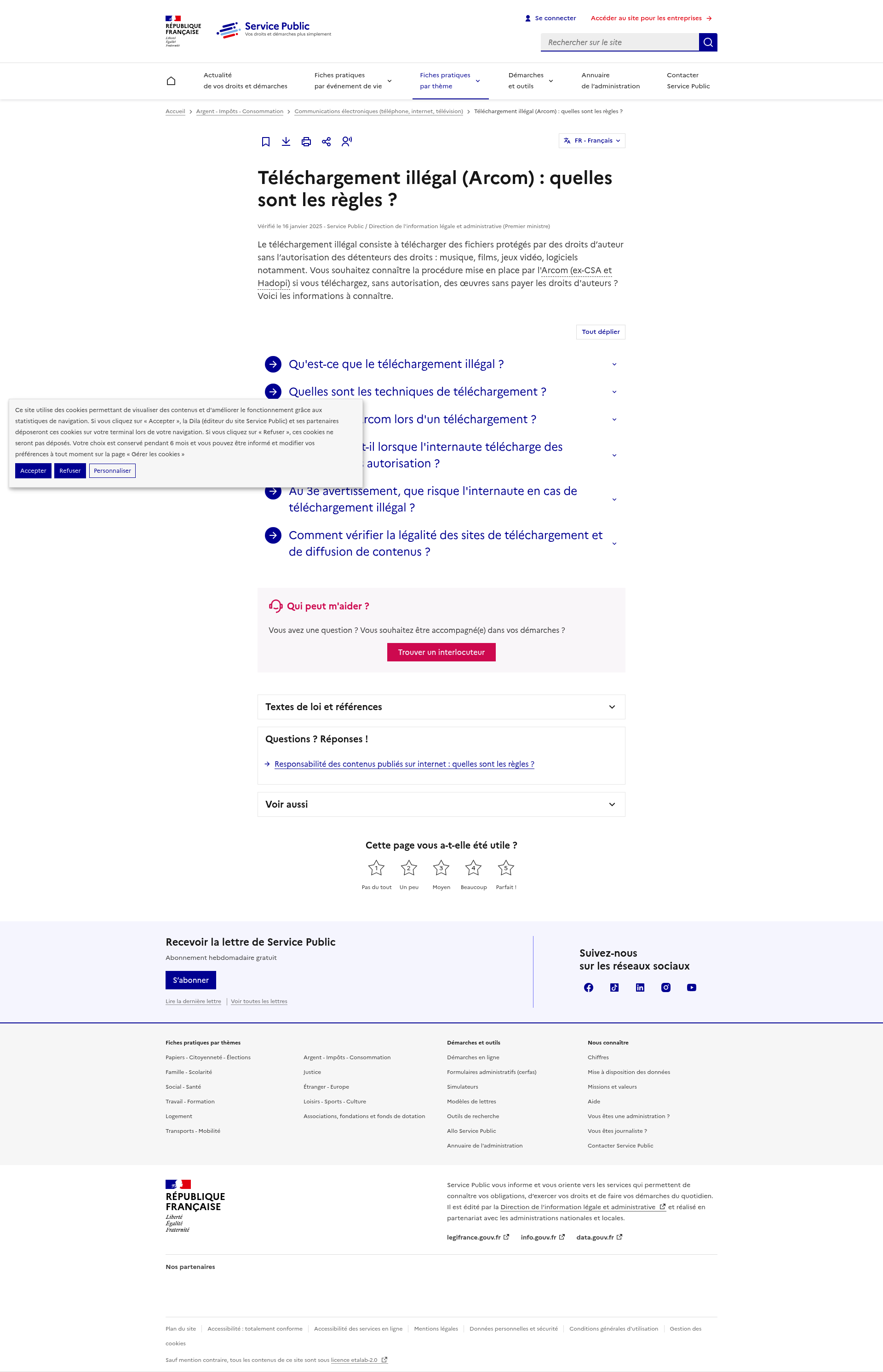 Téléchargement illégal (Arcom) : quelles sont les règles ?Le téléchargement illégal consiste à télécharger des fichiers protégés par des droits d’auteur sans l’autorisation des détenteurs des droits.PNGPDF