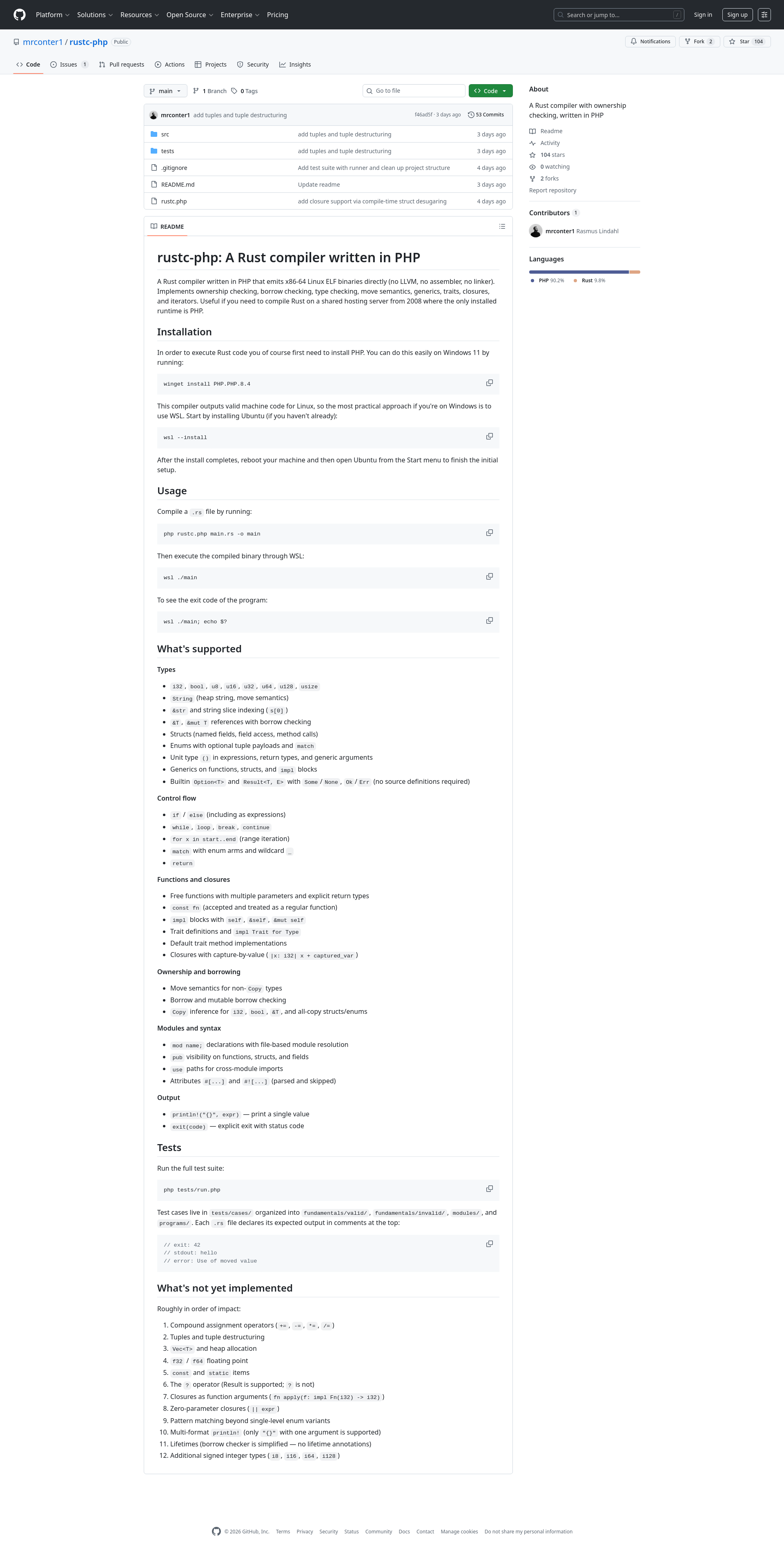 GitHub - mrconter1/rustc-php: A Rust compiler with ownership checking, written in PHPA Rust compiler with ownership checking, written in PHP - mrconter1/rustc-phpPNGPDF