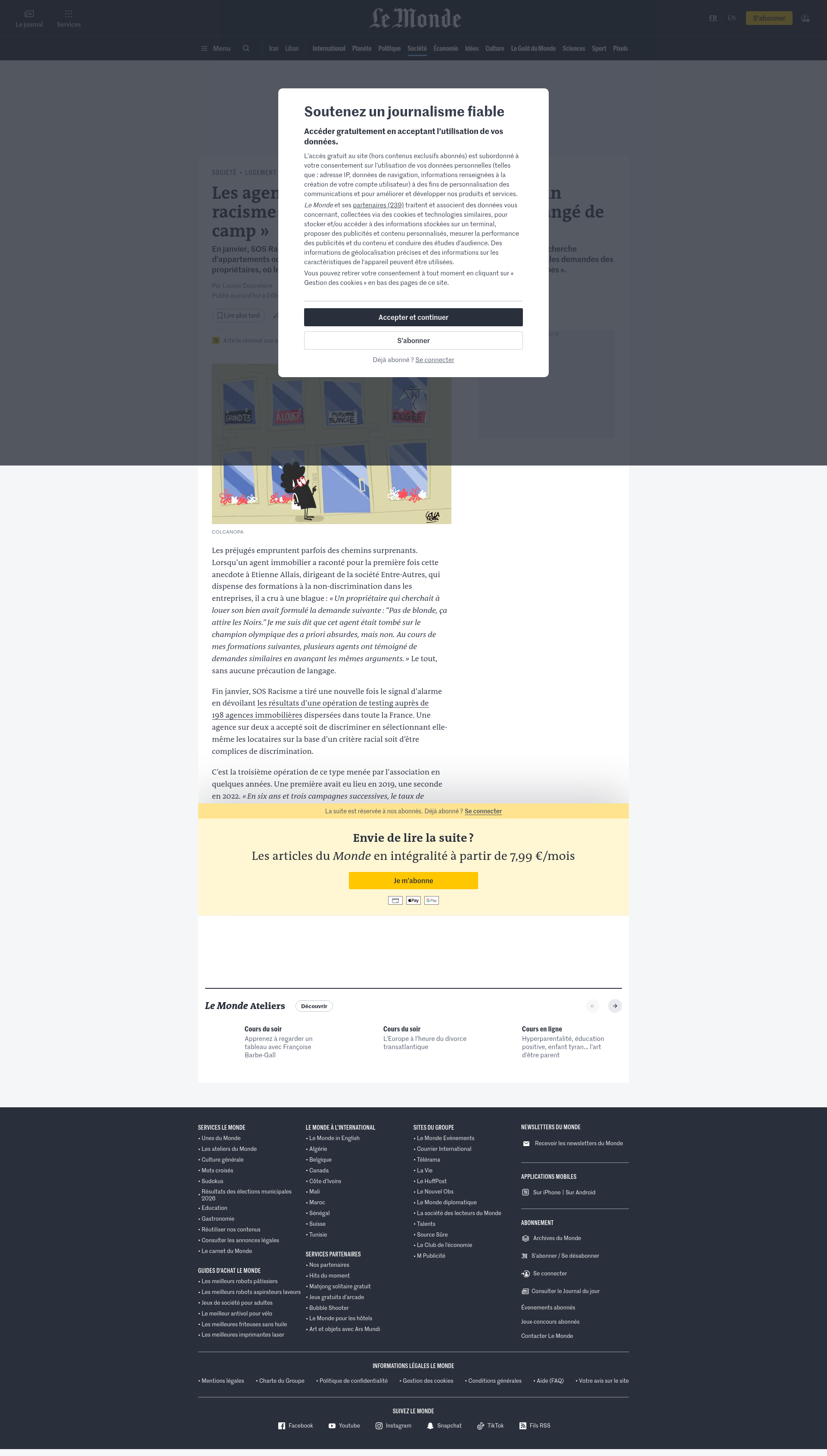 Les agences immobilières confrontées à un racisme devenu sans fard : « La gêne a changé de camp »En janvier, SOS Racisme a alerté une nouvelle fois sur les discriminations à l’œuvre lors de la recherche d’appartements ou de maisons. Les professionnels, au-delà des chiffres, racontent l’évolution des demandes des propriétaires, où les circonvolutions ont disparu pour demander « pas de Noirs » ou « pas d’Arabes ».PNGPDF