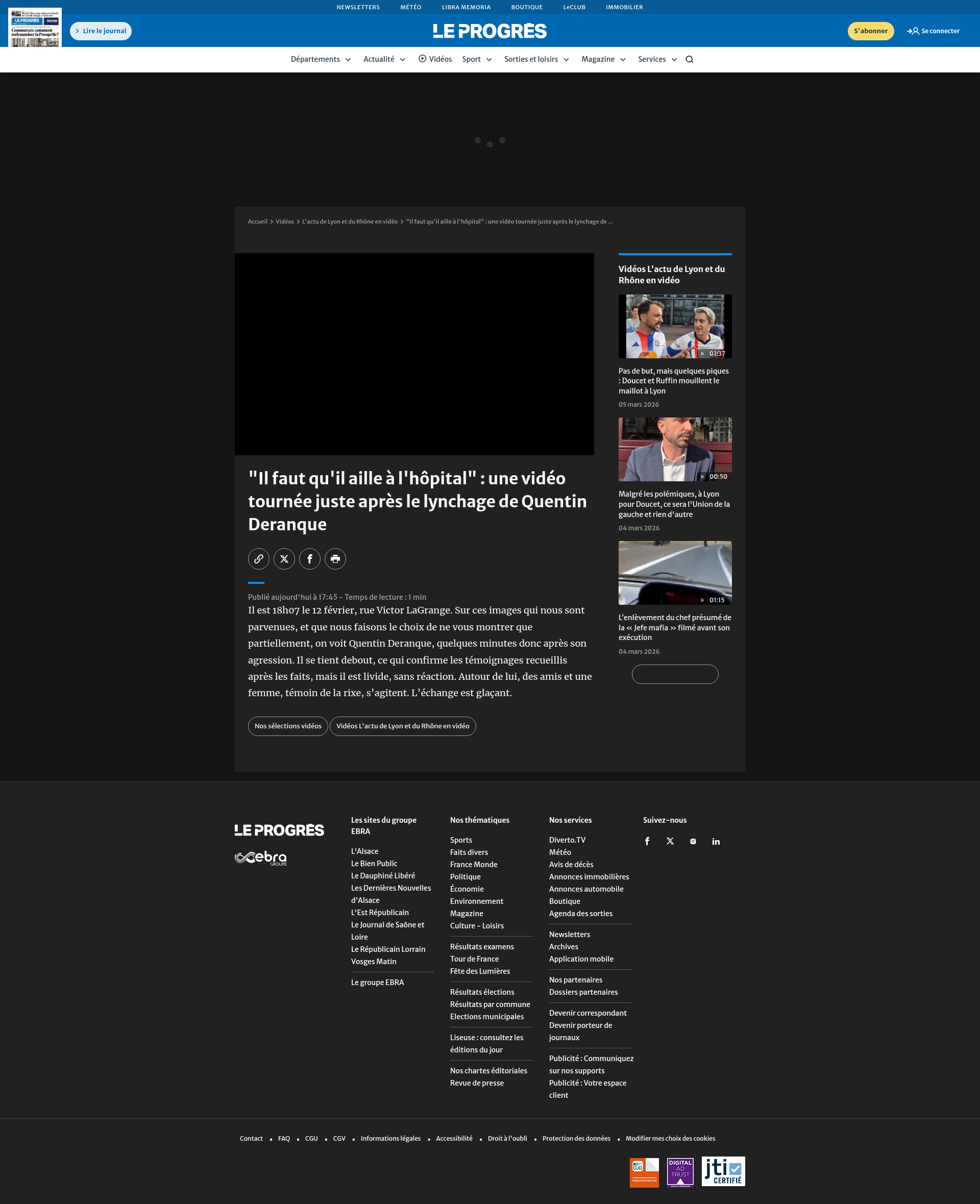 "Il faut qu'il aille à l'hôpital" : une vidéo tournée juste après le lynchage de Quentin DeranqueIl est 18h07 le 12 février, rue Victor LaGrange. Sur ces images qui nous sont parvenues, et que nous faisons le choix de ne ...PNGPDF