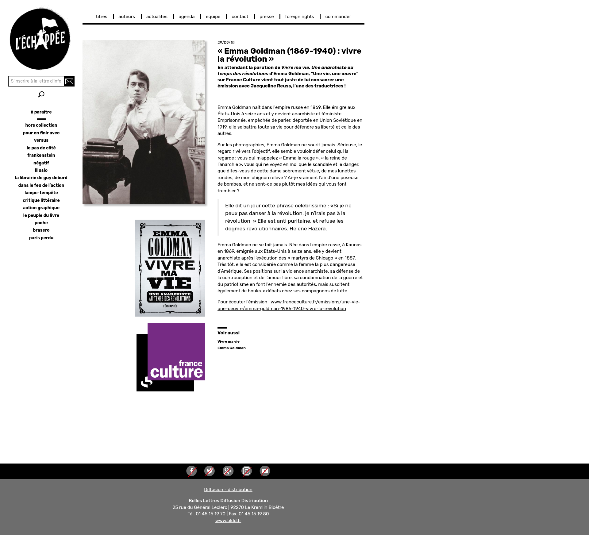 « Emma Goldman (1869-1940) : vivre la révolution » | Les Éditions L'échappéePNGPDF