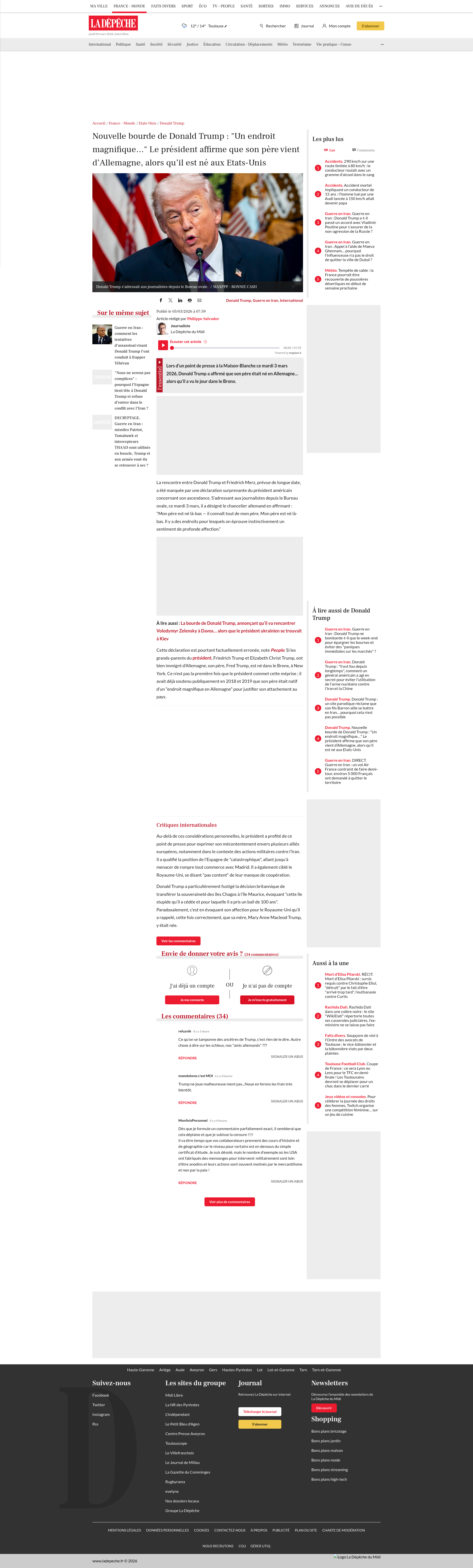 Nouvelle bourde de Donald Trump : "Un endroit magnifique…" Le président affirme que son père vient d’Allemagne, alors qu’il est né aux Etats-UnisLors d’un point de presse à la Maison-Blanche ce mardi 3 mars 2026, Donald Trump a affirmé que son père était né en Allemagne… alors qu’il a vu le jour dans le Bronx.PNGPDF