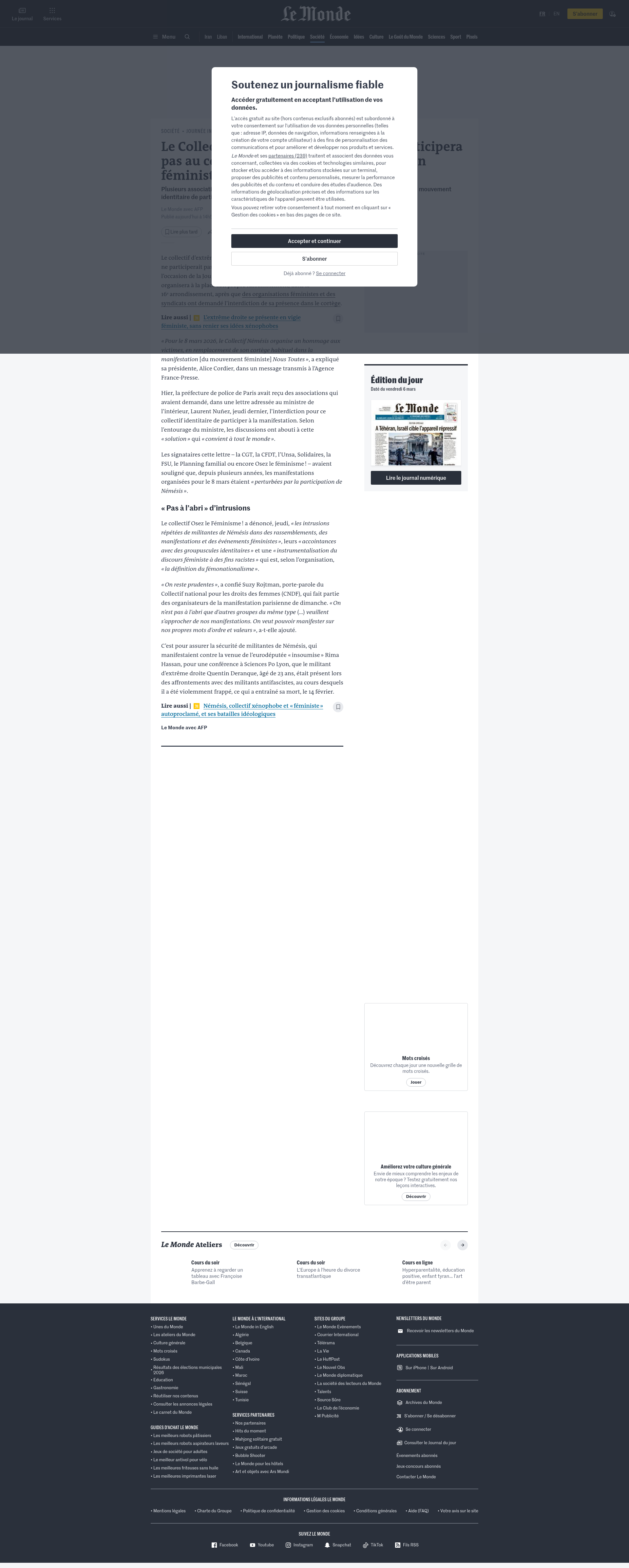 Le Collectif Némésis annonce qu’il ne participera pas au cortège parisien de la manifestation féministe du 8 marsPlusieurs associations avaient demandé au ministère de l’intérieur, jeudi dernier, d’interdire au mouvement identitaire de participer à la marche.PNGPDF