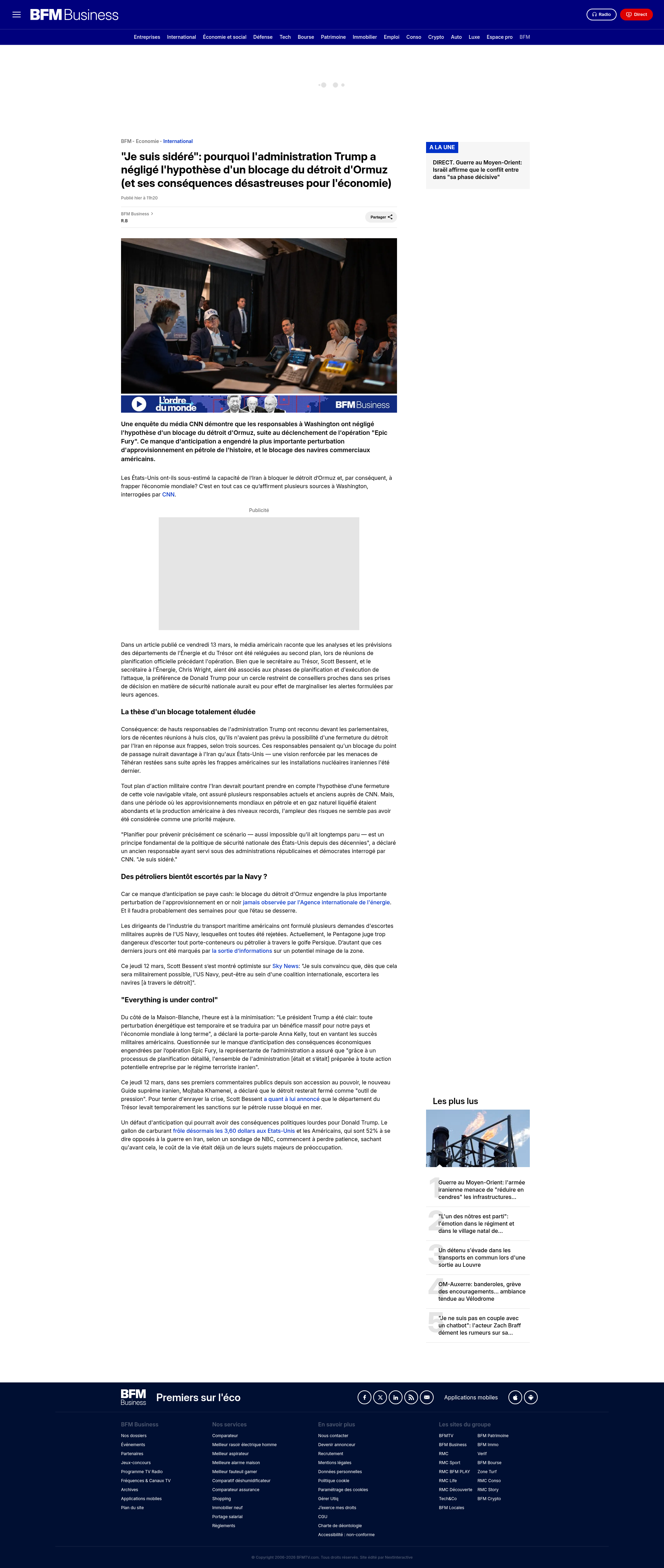 "Je suis sidéré": pourquoi l'administration Trump a négligé l'hypothèse d'un blocage du détroit d'Ormuz (et ses conséquences désastreuses pour l'économie)Une enquête du média CNN démontre que les responsables à Washington ont négligé l'hypothèse d'un blocage du détroit d'Ormuz, suite au déclenchement de l'opération "Epic Fury". Ce manque d'anticipation a engendré la plus importante perturbation d'approvisionnement en pétrole de l'histoire, et le...PNGPDF