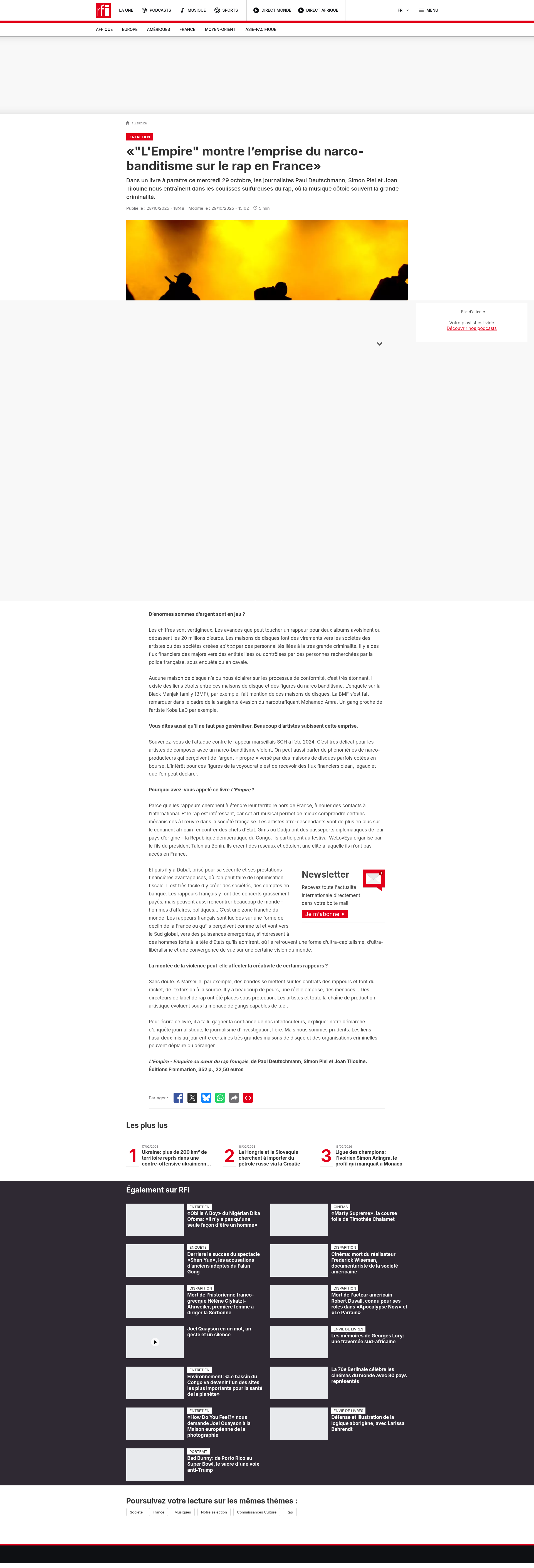 Plus de 25 personnes mises en examen après le coup de filet contre la DZ MafiaLe coup de filet mené contre la DZ Mafia en début de semaine par quelque 900 gendarmes s'est soldé par 26 mises en examen, dont deux rappeurs et un avocat soupçonné d'avoir été corrompuPNGPDF