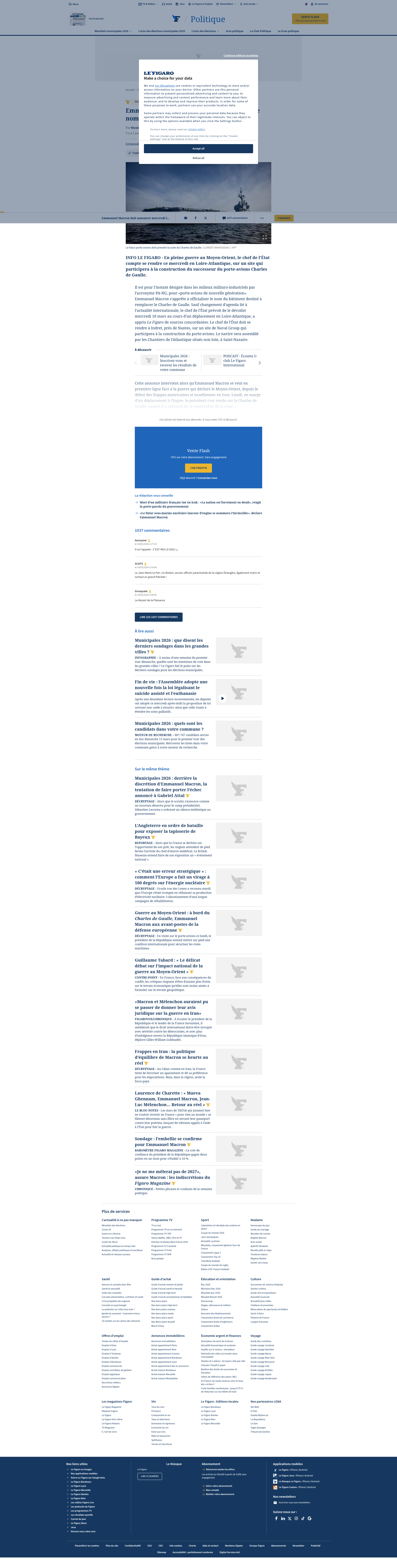Emmanuel Macron doit annoncer mercredi le nom du futur porte-avionsINFO LE FIGARO - En pleine guerre au Moyen-Orient, le chef de l’État compte se rendre ce mercredi en Loire-Atlantique, sur un site qui participera à la construction du successeur du porte-avions Charles de Gaulle.PNGPDF