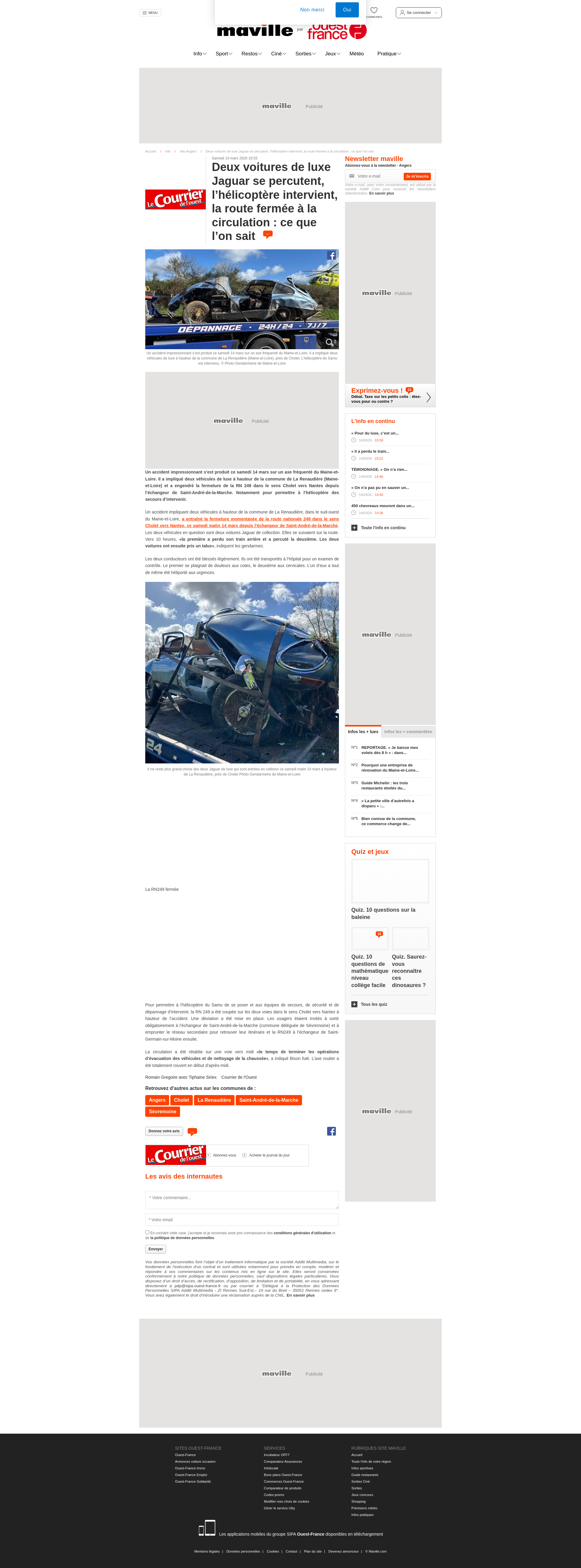 Deux voitures de luxe Jaguar se percutent, l’hélicoptère intervient, la route fermée à laInfo Angers Deux voitures de luxe Jaguar se percutent lhélicoptère intervient la route fermée... AngersPNGPDF