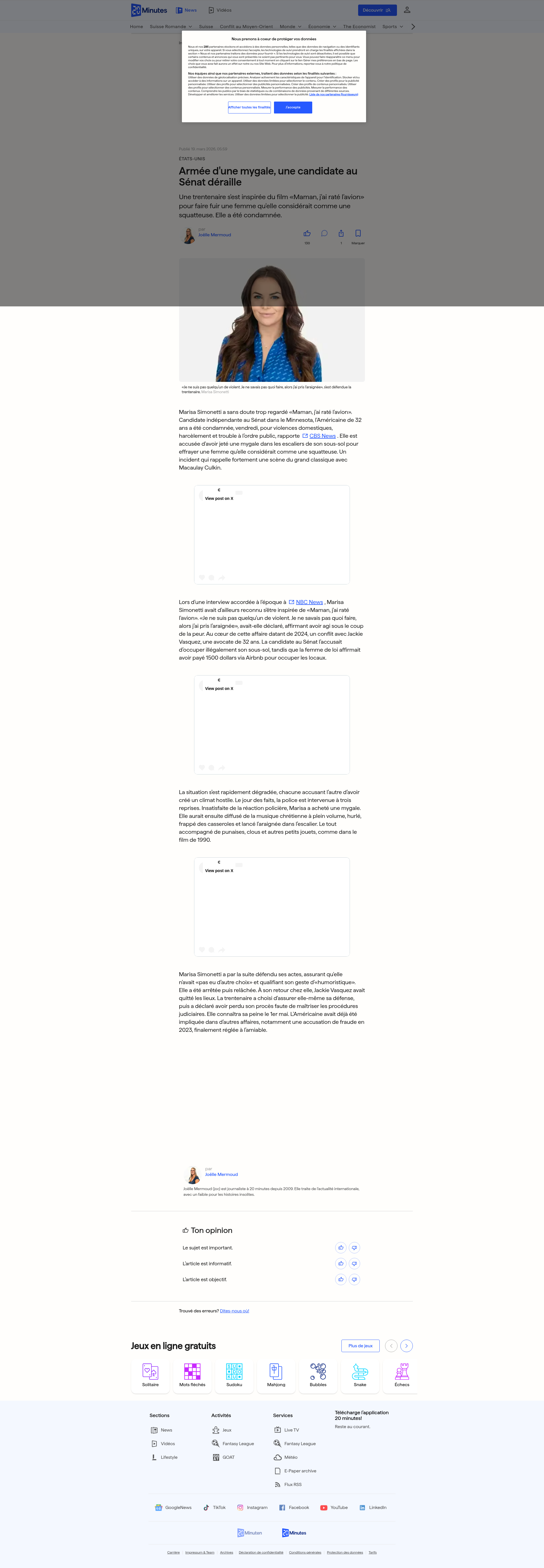 Une candidate au Sénat utilise une mygale pour chasser une squatteuseUne trentenaire s'est inspirée du film «Maman, j'ai raté l'avion» pour faire fuir une femme qu'elle considérait comme une squatteuse. Elle a été condamnée.PNGPDF