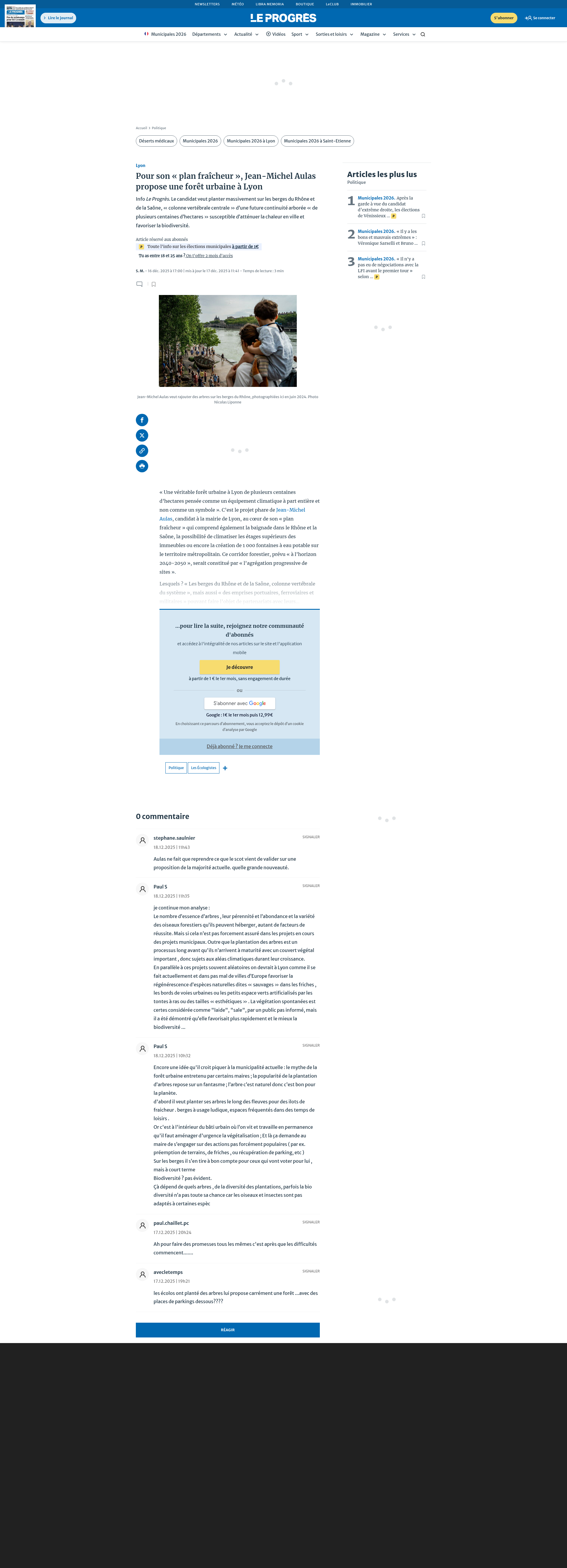 Lyon. Pour son « plan fraîcheur », Jean-Michel Aulas propose une forêt urbaine à LyonInfo Le Progrès. Le candidat veut planter massivement sur les berges du Rhône et de la Saône, « colonne vertébrale centrale » d’une future continuité ...PNGPDF