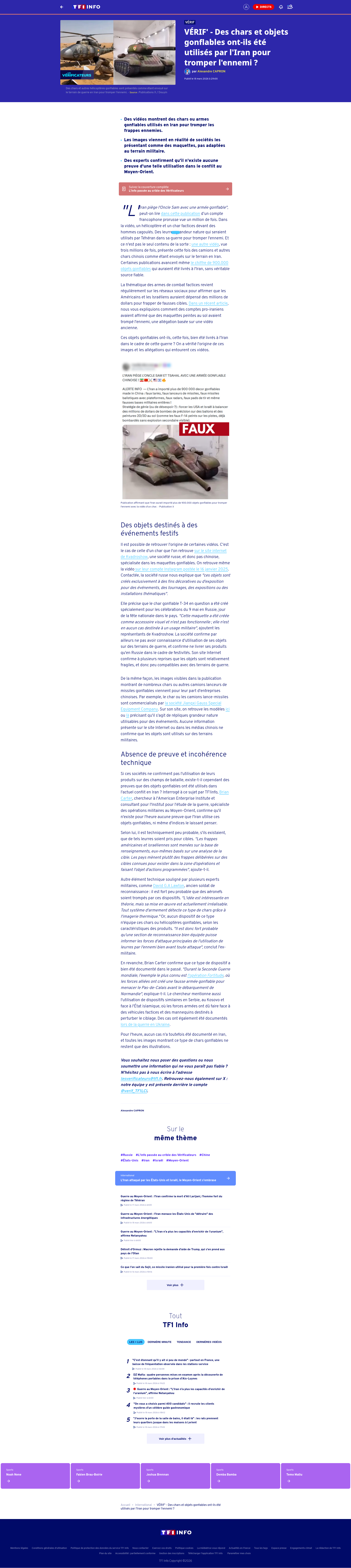 VÉRIF' - Des chars et objets gonflables ont-ils été utilisés par l'Iran pour tromper l'ennemi ? | TF1 InfoDes vidéos montrent des chars ou armes gonflables utilisés en Iran pour tromper les frappes ennemies. Les images viennent en réalité de sociétés les présentant comme des maquettes, pas adaptées au terrain militaire. Des experts confirment qu'il n'existe aucune preuve d'une telle utilisation dans le conflit au Moyen-Orient. - VÉRIF' - Des chars et objets gonflables ont-ils été utilisés par l'Iran pour tromper l'ennemi ? (International).PNGPDF
