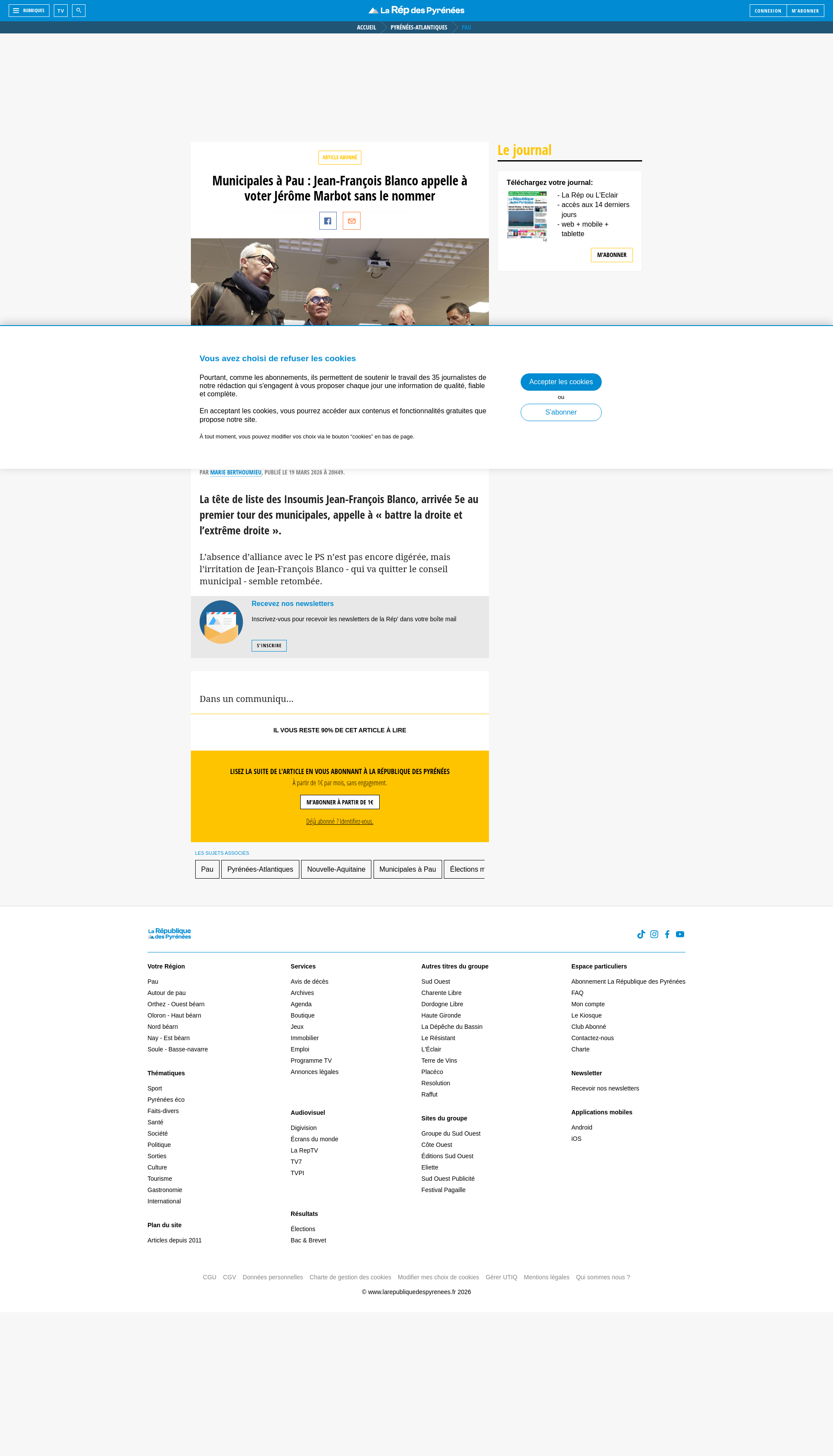 Municipales à Pau : Jean-François Blanco appelle à voter Jérôme Marbot sans le nommerLa tête de liste des Insoumis Jean-François Blanco, arrivée 5e au premier tour des municipales, appelle à « battre la droite et l’extrême droite ».PNGPDF