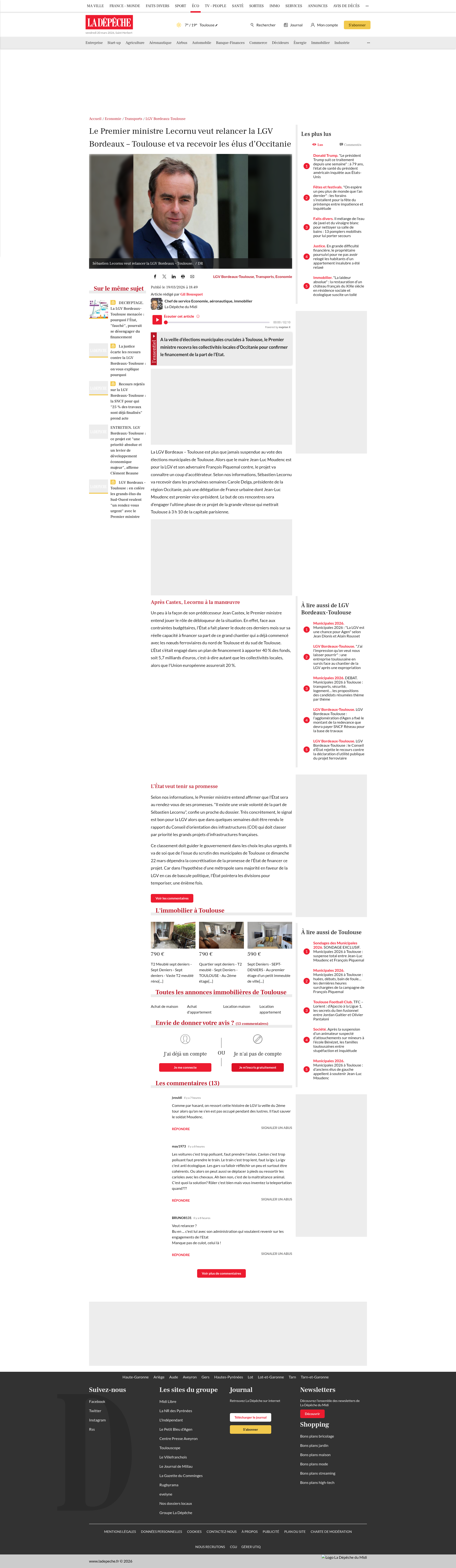 Le Premier ministre Lecornu veut relancer la LGV Bordeaux – Toulouse et va recevoir les élus d’OccitanieA la veille d’élections municipales cruciales à Toulouse, le Premier ministre recevra les collectivités locales d’Occitanie pour confirmer le financement de la part de l’Etat.PNGPDF