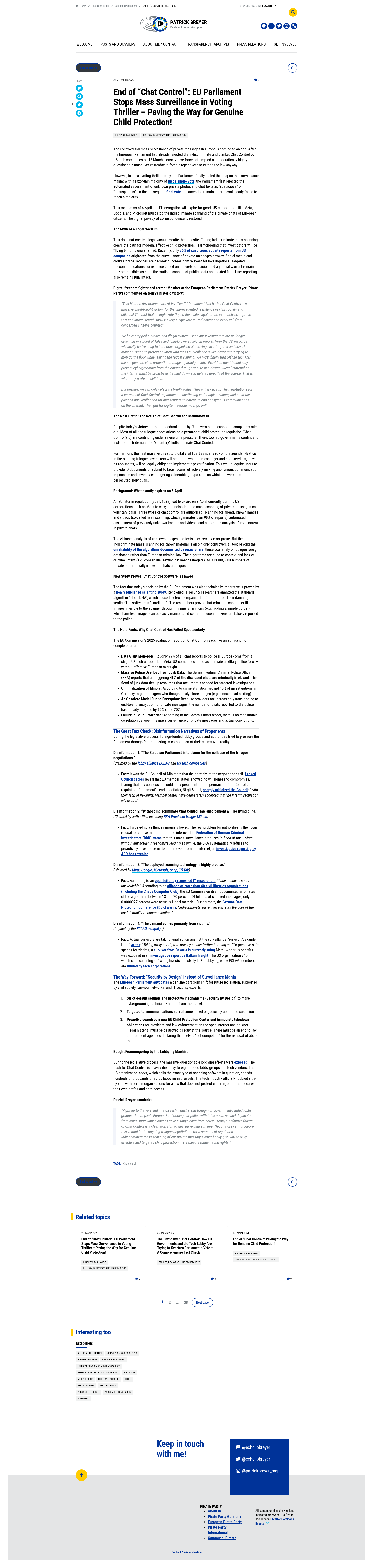End of “Chat Control”: EU Parliament Stops Mass Surveillance in Voting Thriller – Paving the Way for Genuine Child Protection!The controversial mass surveillance of private messages in Europe is coming to an end. After the European Parliament had already rejected the indiscriminate and blanket Chat Control by US tech companies on 13 March, conservative forces attempted a democratically highly questionable maneuver yesterdaPNGPDF