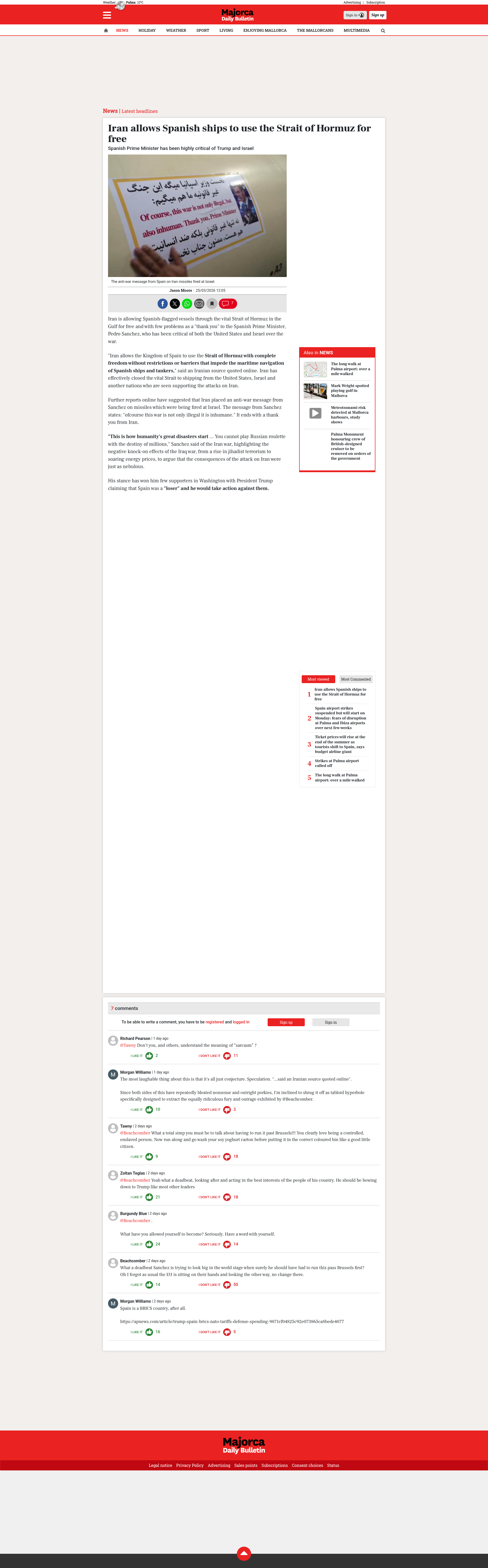 Iran allows Spanish ships to use the Strait of Hormuz for freeSpanish Prime Minister has been highly critical of Trump and Israel. Anti-war message from Spanish PM placed on Iran missile fired at IsraelPNGPDF
