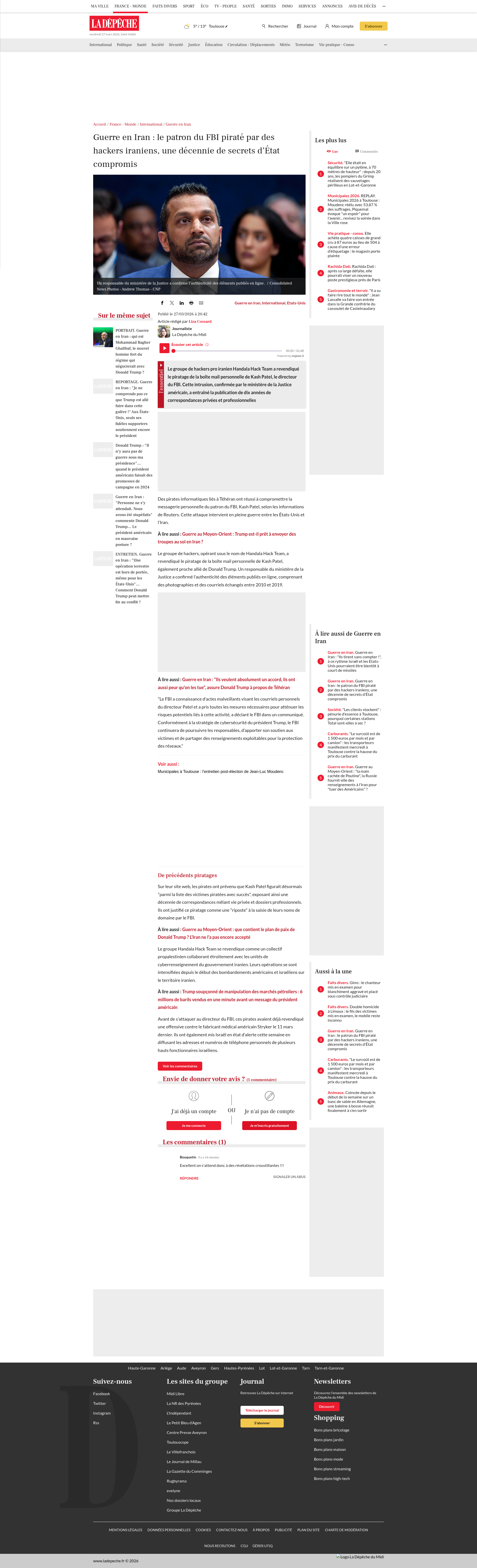 Guerre en Iran : le patron du FBI piraté par des hackers iraniens, une décennie de secrets d’État compromisLe groupe de hackers pro iranien Handala Hack Team a revendiqué le piratage de la boîte mail personnelle de Kash Patel, le directeur du FBI. Cette intrusion, confirmée par le ministère de la Justice américain, a...PNGPDF