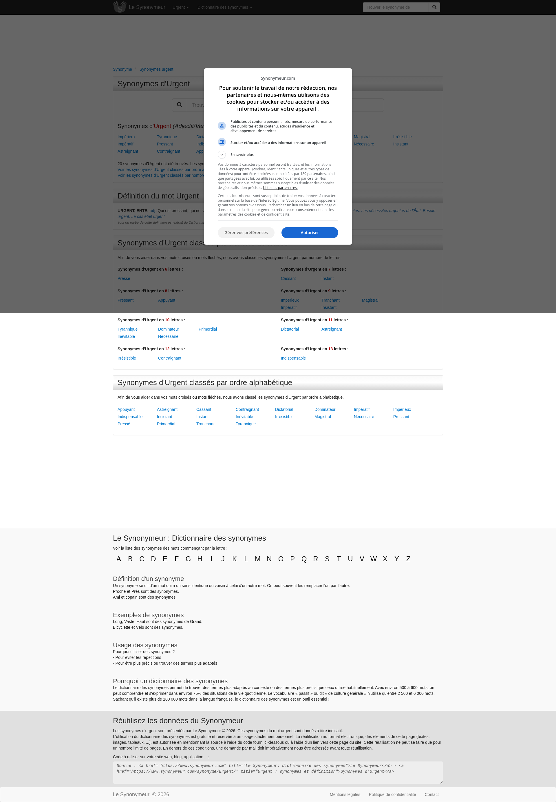 Urgent : synonymes et définitionTous les synonymes de Urgent dans le Synonymeur, le dictionnaire des synonymes simple et gratuit.PNGPDF