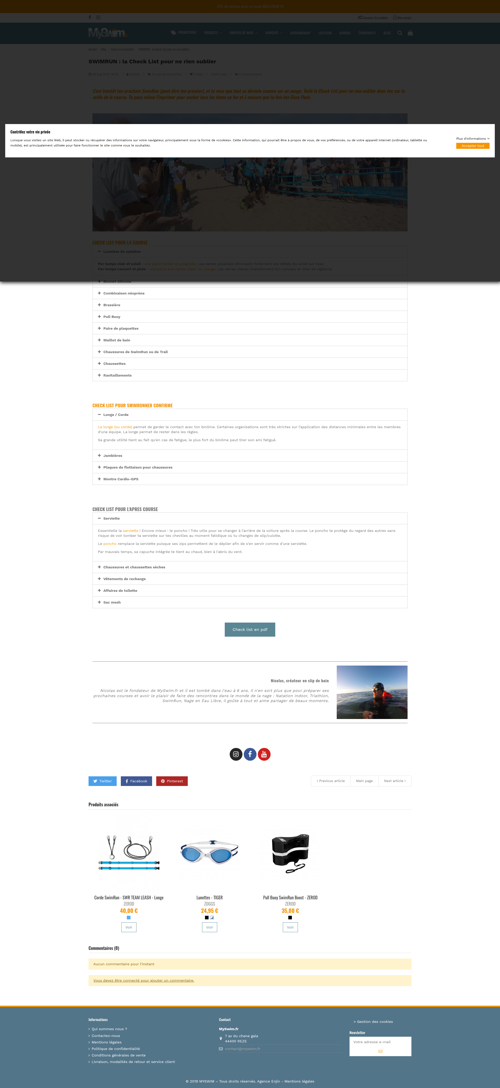 Check List du SwimRunnerRetrouve la Check List du SwimRunner, tout le matériel et équipement à ne pas oublier, pour bien se préparer à la course de SwimRunPNGPDF