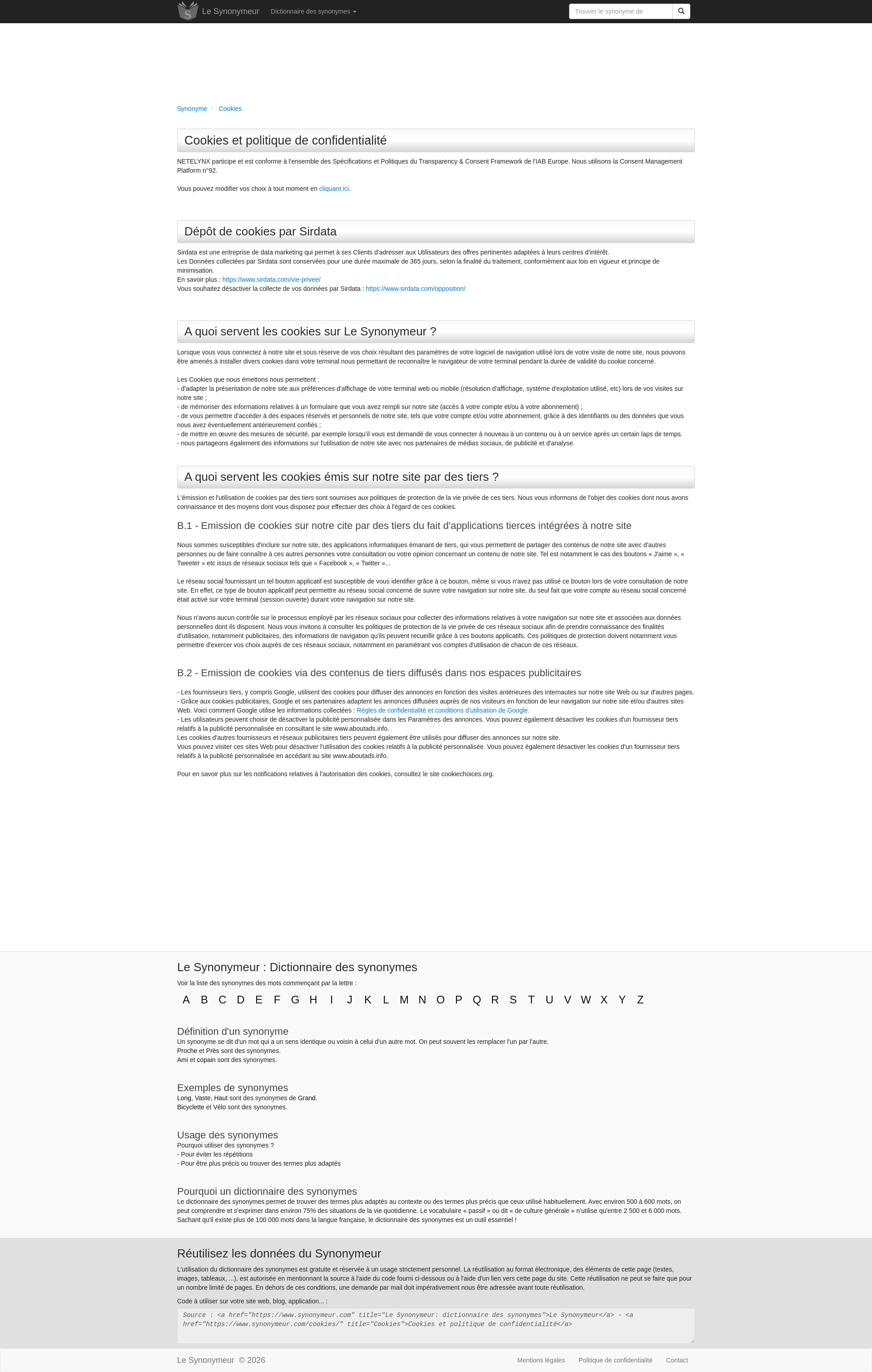 CookiesLe Synonymeur : Mentions légales et conditions d'utilisations du site Le SynonymeurPNGPDF