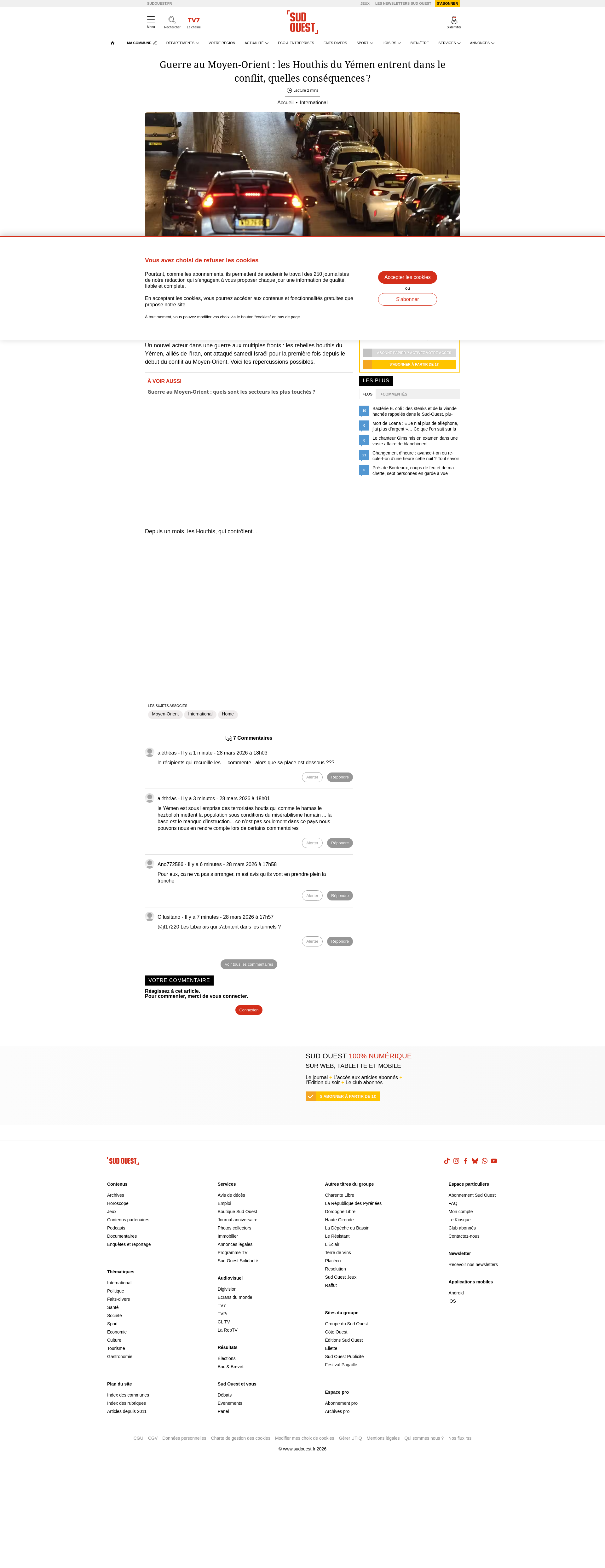 Guerre au Moyen-Orient : les Houthis du Yémen entrent dans le conflit, quelles conséquences ?Après avoir menacé plusieurs fois d’intervenir, les Houthis sont passés à l’acte samedi, déclarant avoir visé des « sites militaires sensibles » israéliens. Une « escalade grave »PNGPDF