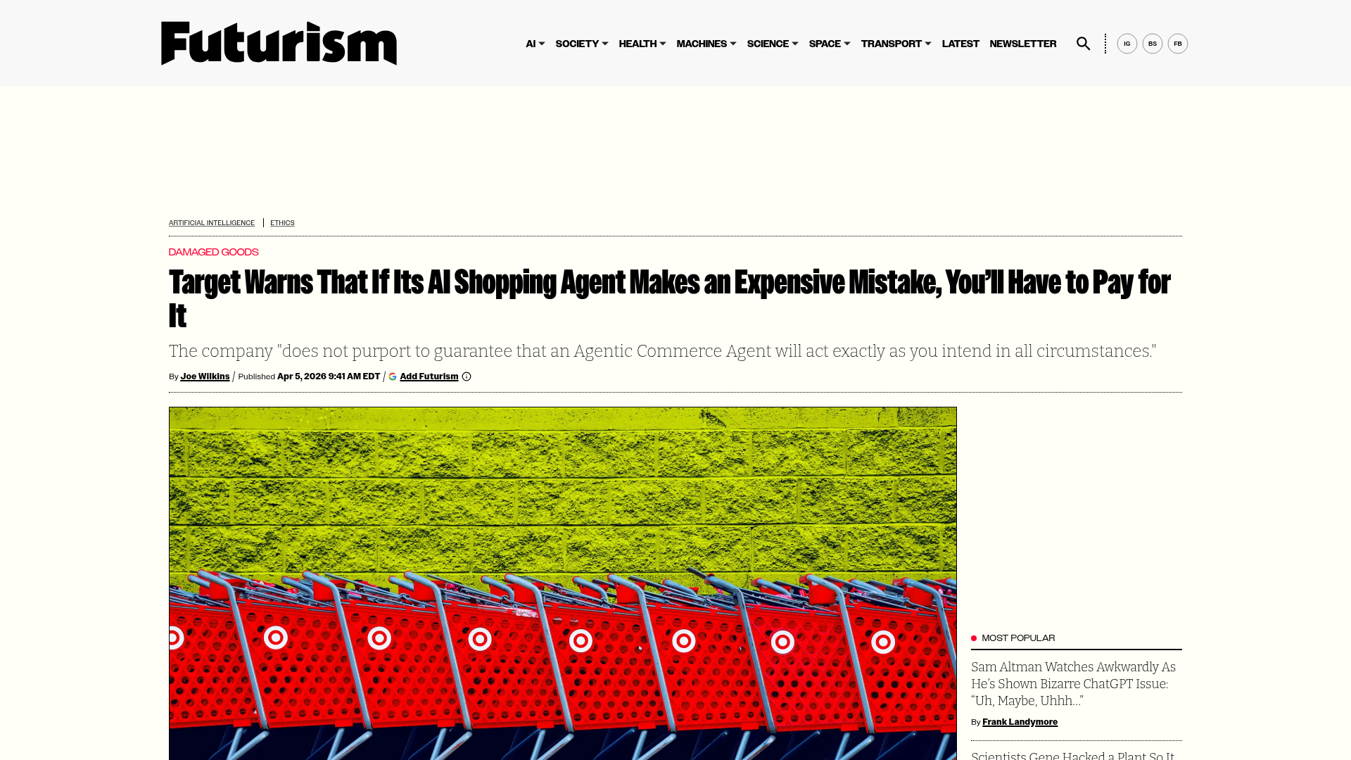 Target Warns That If Its AI Shopping Agent Makes an Expensive Mistake, You'll Have to Pay for ItBig box stores are happy to cram AI agents down your throat, but they absolutely will not be responsible for it when it messes up.PNGPDF