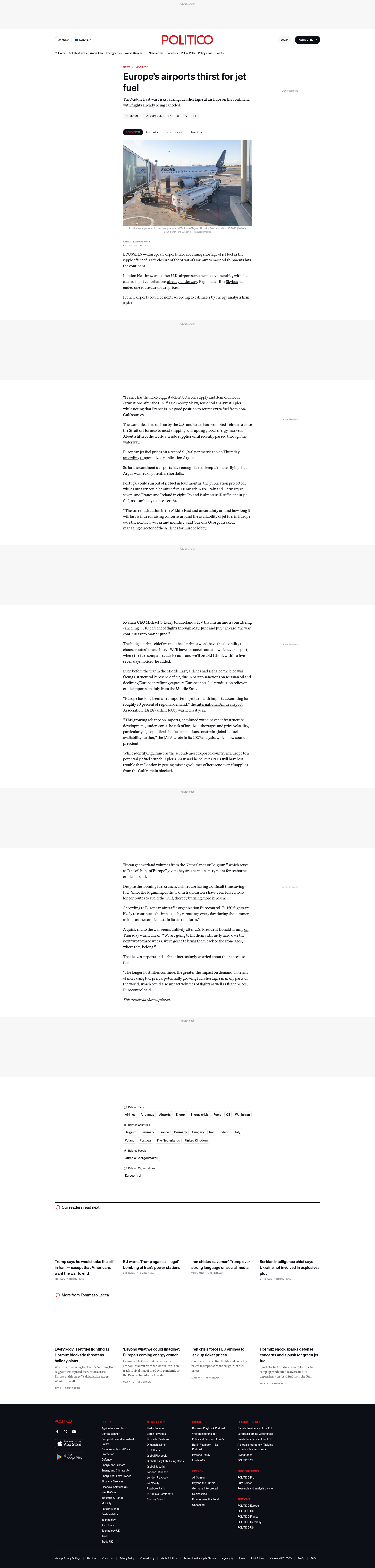 Europe’s airports thirst for jet fuelThe Middle East war risks causing fuel shortages at air hubs on the continent, with flights already being canceled.PNGPDF