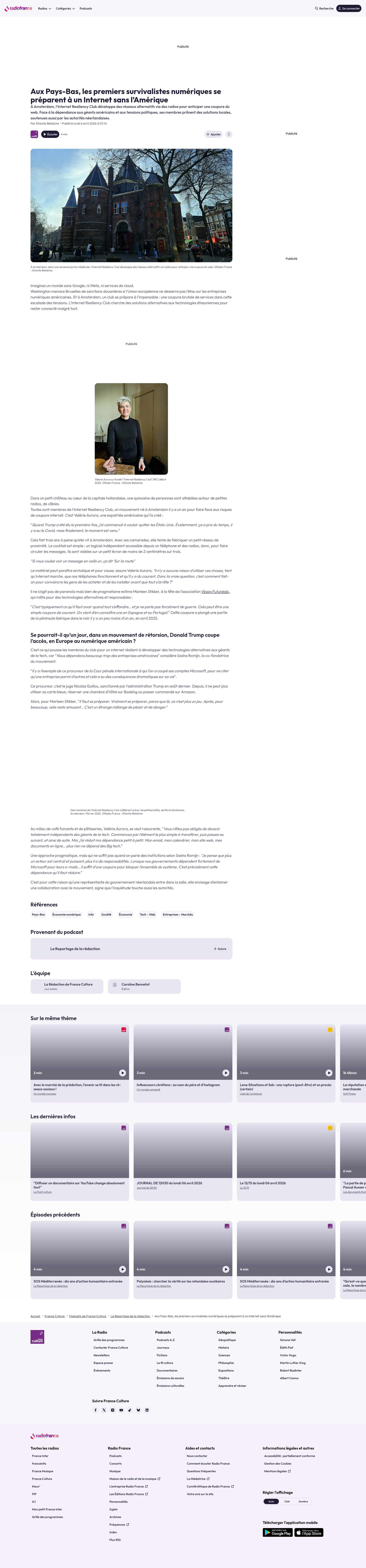 Aux Pays-Bas, les premiers survivalistes numériques se préparent à un Internet sans l’AmériqueÀ Amsterdam, l’Internet Resiliency Club développe des réseaux alternatifs via des radios pour anticiper une coupure du web. Face à la dépendance aux géants américains et aux tensions politiques, ses membres prônent des solutions locales, soutenues aussi par les autorités néerlandaises.PNGPDF