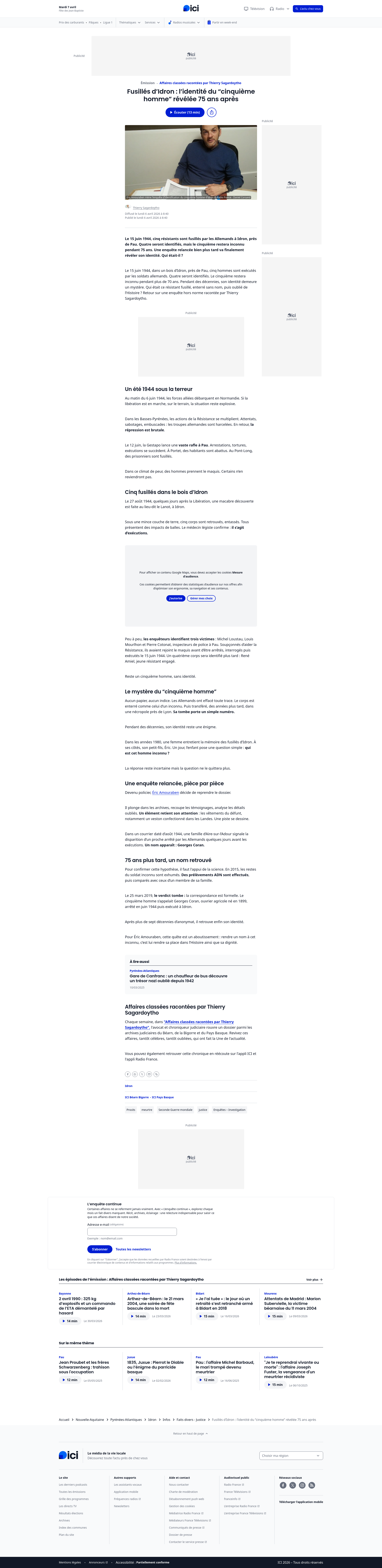 Fusillés d’Idron : l’identité du “cinquième homme” révélée 75 ans après - ICILe 15 juin 1944, cinq résistants sont fusillés par les Allemands à Idron, près de Pau. Quatre seront identifiés, mais le cinquième restera inconnu pendant 75 ans. Une enquête relancée bien plus tard va finalement révéler son identité. Qui était-il ? PNGPDF