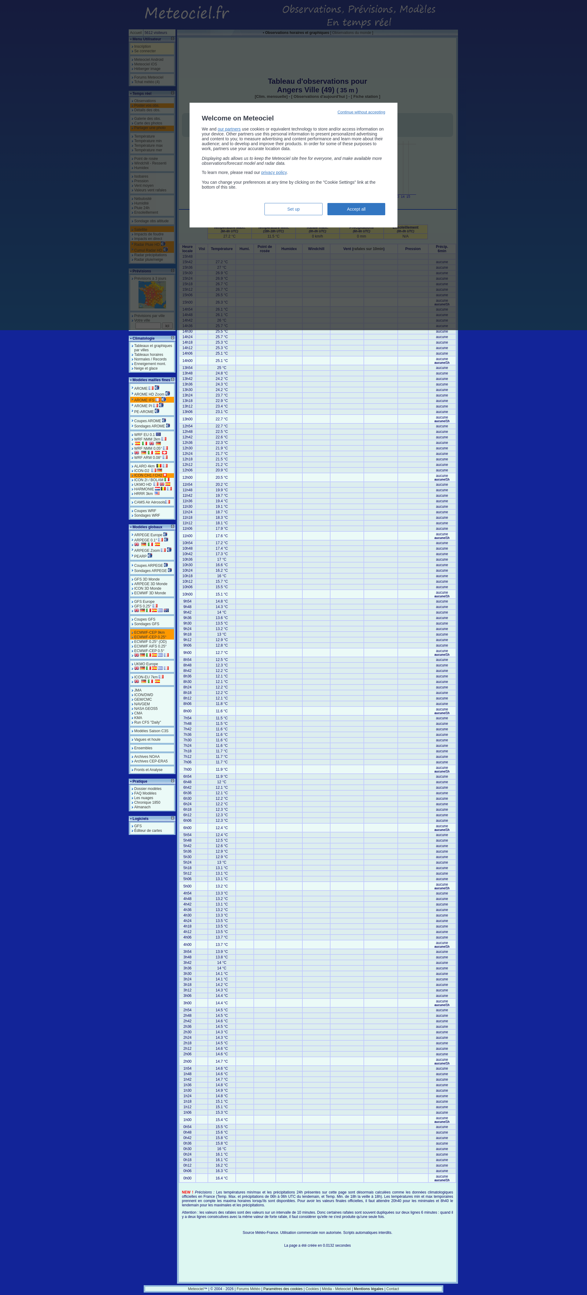 Meteociel - Observations Angers Ville (49) - données météo de la station - Tableaux horaires en temps réelRelevés horaires des observations météo de Angers Ville (49). Températures, pression, précipitations, vent en temps réel PNGPDF