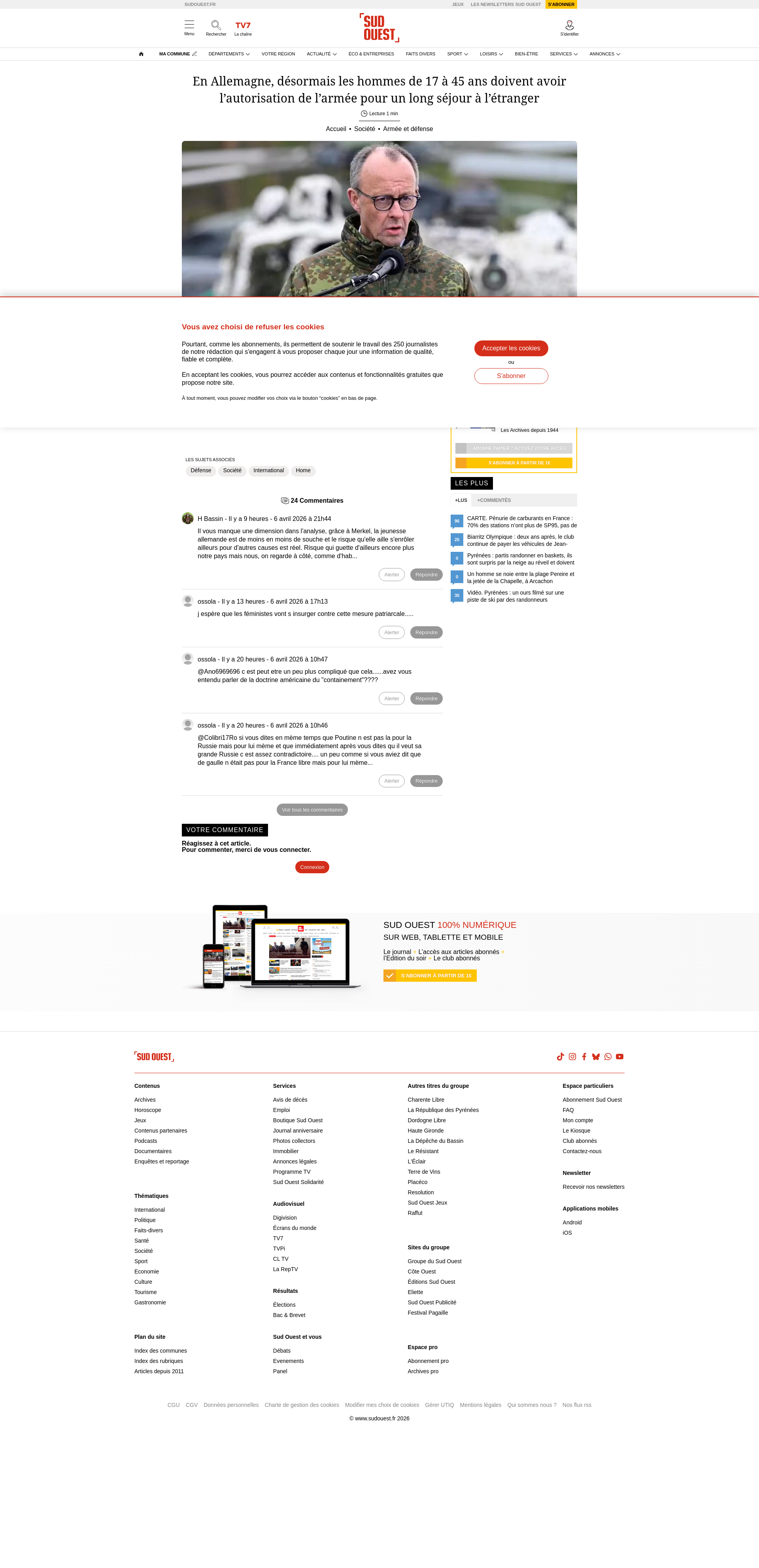 En Allemagne, désormais les hommes de 17 à 45 ans doivent avoir l’autorisation de l’armée pour un long séjour à l’étrangerCette mesure est inscrite dans la nouvelle loi sur le service militaire adoptée fin 2025 par le gouvernement dirigé par le chancelier Friedrich Merz. Elle concerne tous les séjours de plus de trois moisPNGPDF