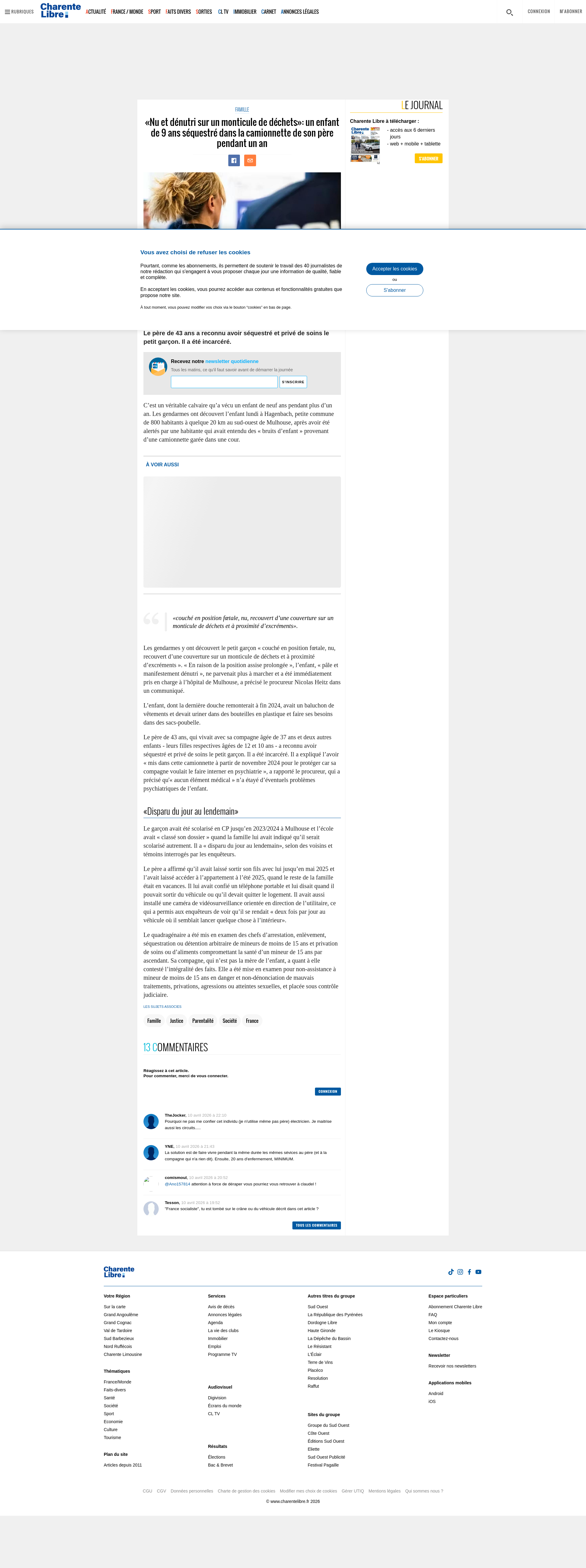 «Nu et dénutri sur un monticule de déchets»: un enfant de 9 ans séquestré dans la camionnette de son père pendant un anLe père de 43 ans a reconnu avoir séquestré et privé de soins le petit garçon. Il a été incarcéré.PNGPDF