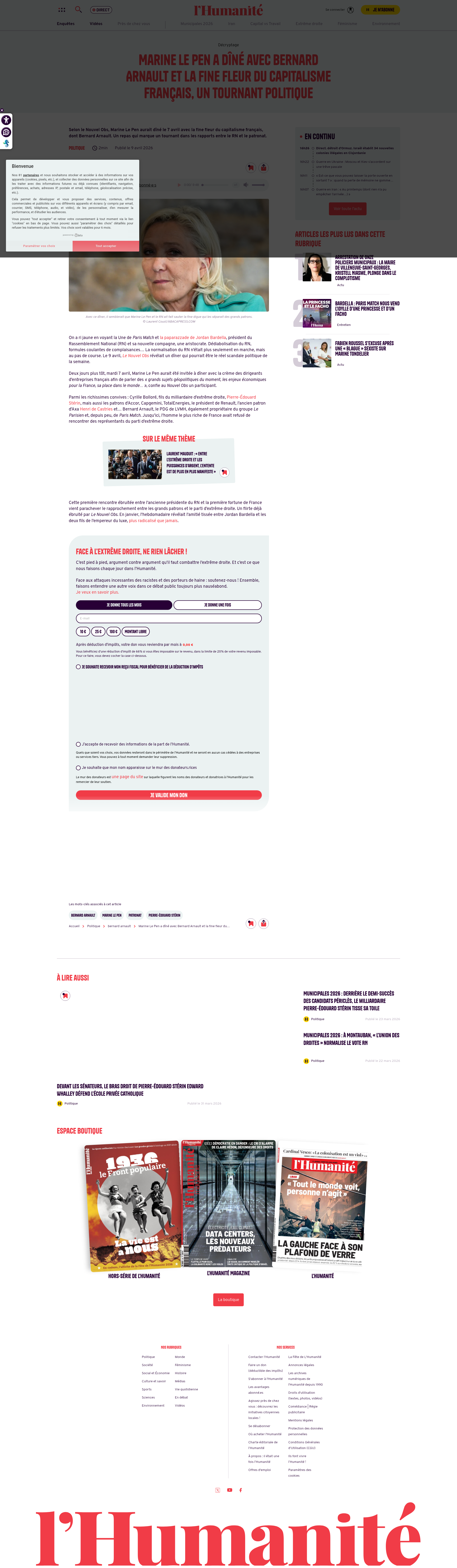 Marine Le Pen a dîné avec Bernard Arnault et la fine fleur du capitalisme français, un tournant politique - L'Humanité Selon le Nouvel Obs, Marine Le Pen aurait dîné le 7 avril avec la fine fleur du capitalisme français, dont Bernard Arnault. Un repas qui marque un tournant dans les rapports entre le RN ...PNGPDF