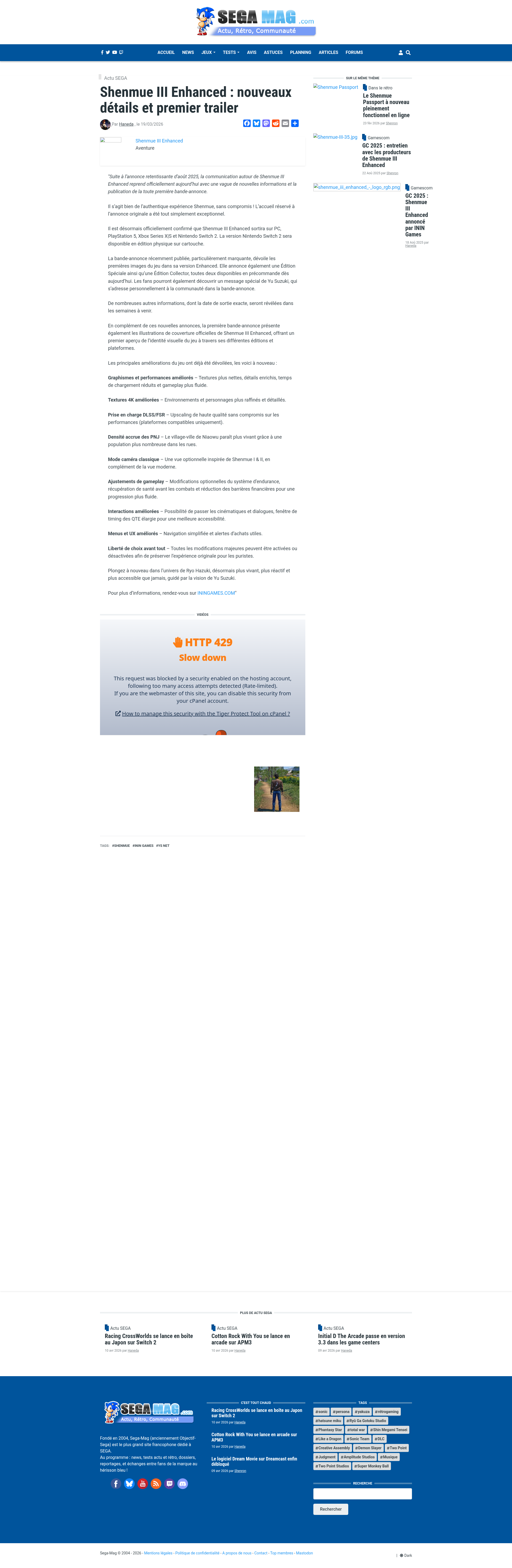 Shenmue III Enhanced : nouveaux détails et premier trailerActu SEGA - Par HanedaPNGPDF