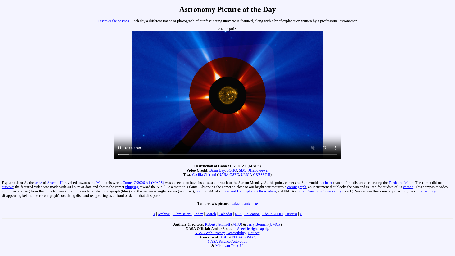 APOD: 2026 April 9 – Destruction of Comet C/2026 A1 (MAPS)A different astronomy and space science related image is featured each day, along with a brief explanation.PNGPDF