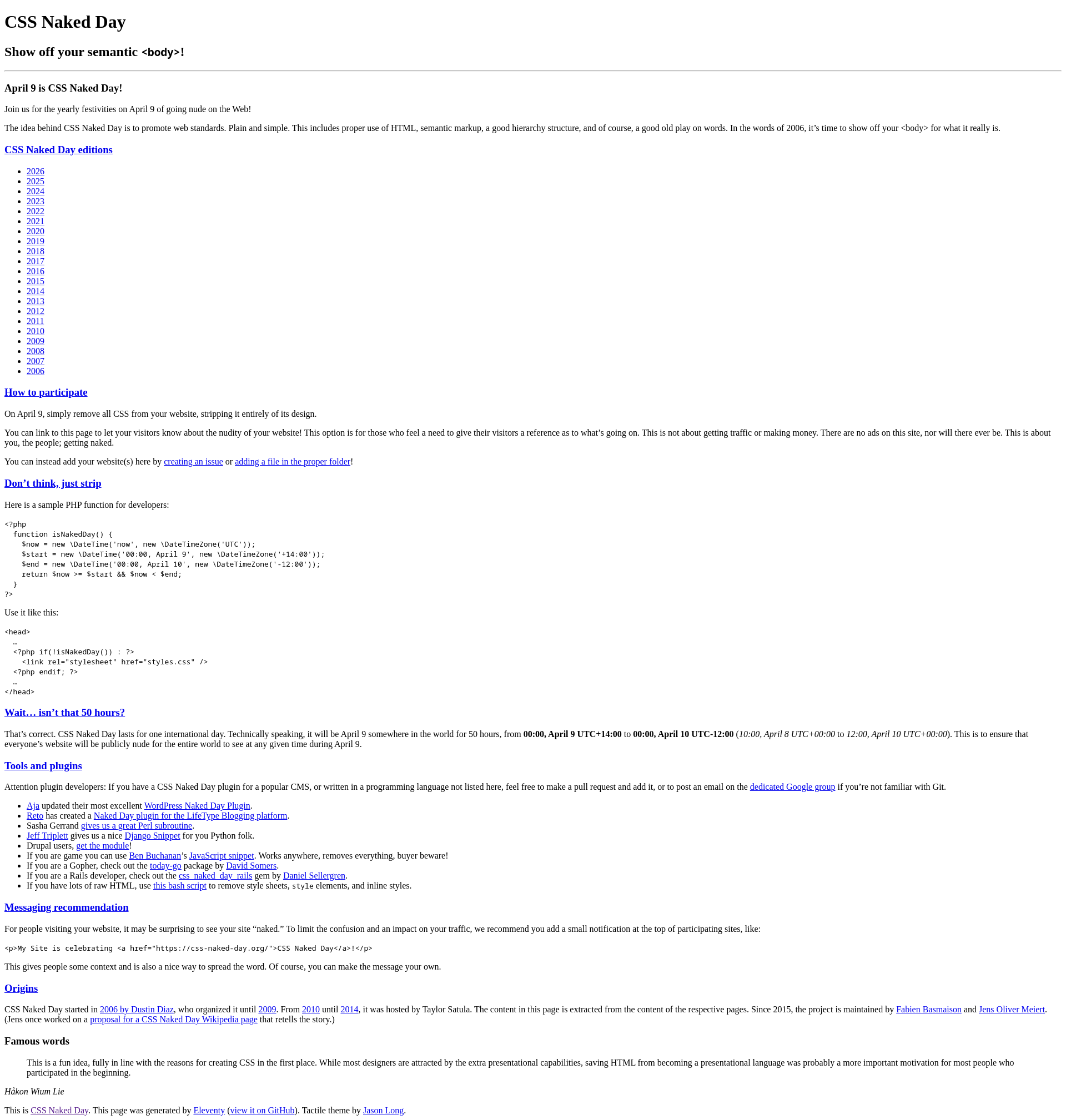CSS Naked DayPromoting Web standards all declarations at a timePNGPDF