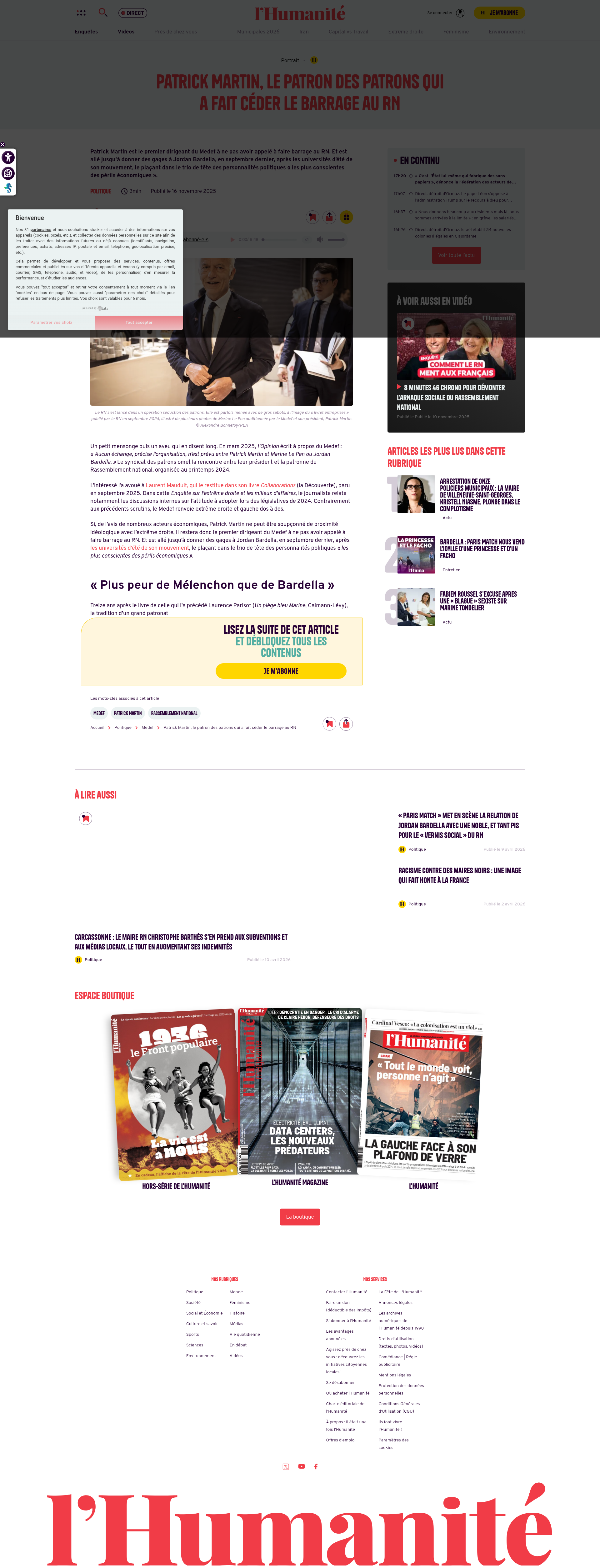 Patrick Martin, le patron des patrons qui a fait céder le barrage au RN - L'Humanité Patrick Martin est le premier dirigeant du Medef à ne pas avoir appelé à faire barrage au RN. Et est allé jusqu’à donner des gages à Jordan Bardella, en septembre dernier, après le...PNGPDF