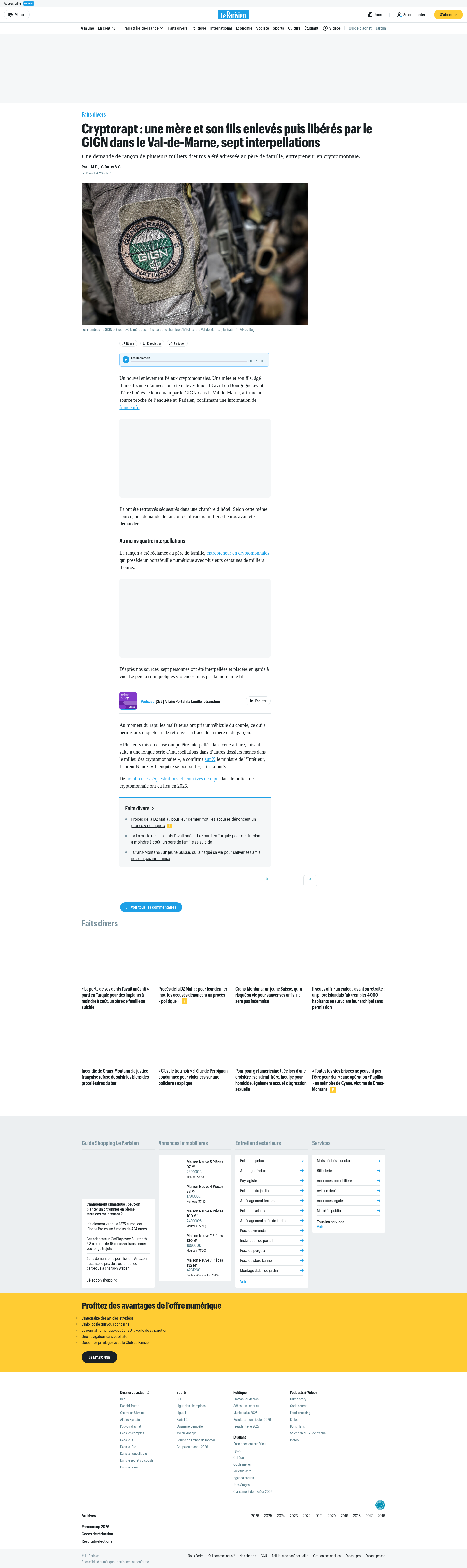 Cryptorapt : une mère et son fils enlevés puis libérés par le GIGN dans le Val-de-Marne, sept interpellationsUne demande de rançon de plusieurs milliers d’euros a été adressée au père de famille, entrepreneur en cryptomonnaie.PNGPDF