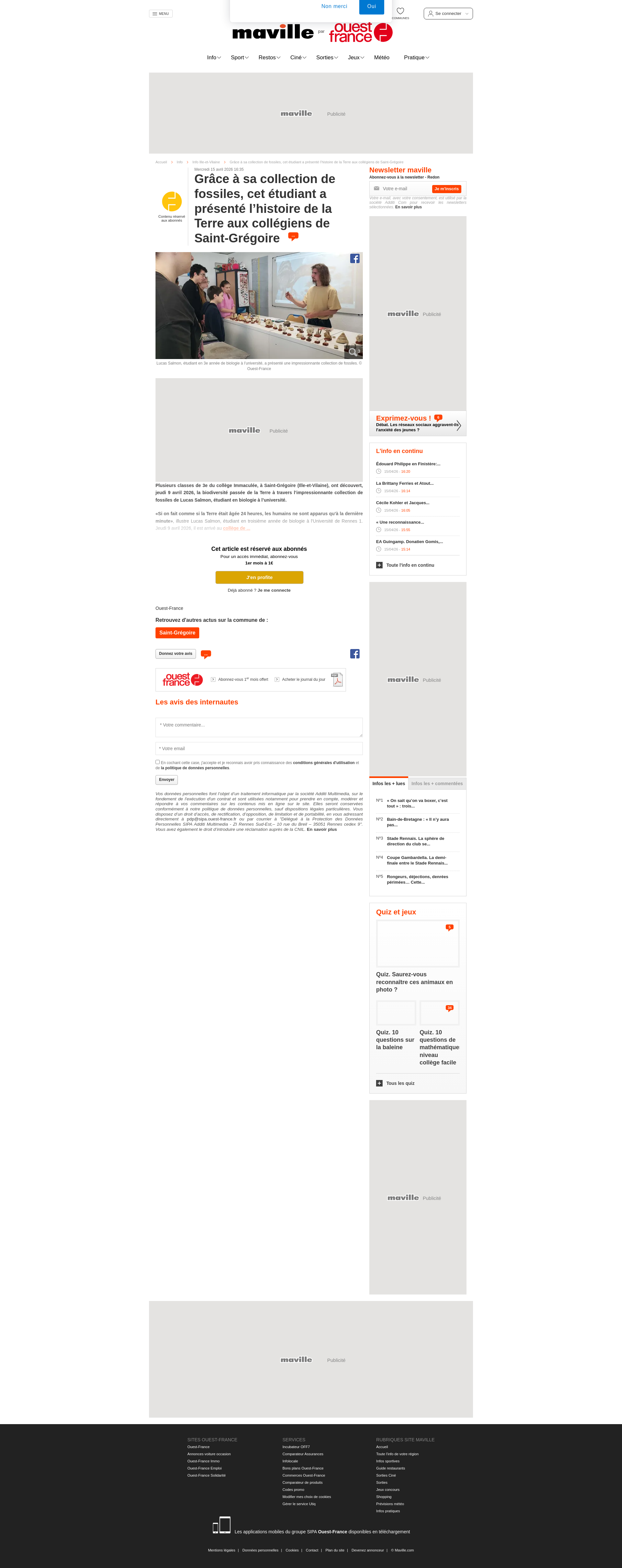 Grâce à sa collection de fossiles, cet étudiant a présenté l’histoire de la Terre auxInfo Rennes Grâce à sa collection de fossiles cet étudiant a présenté lhistoire de la Terre... RedonPNGPDF