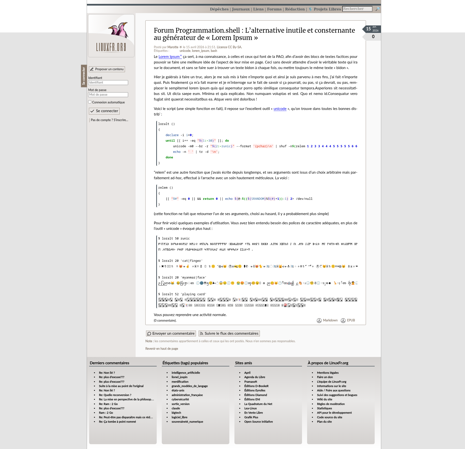 LinuxFr.org : première et seconde quinzaines de février 2026 - LinuxFr.orgLinuxFr.org : première et seconde quinzaines de février 2026PNGPDF
