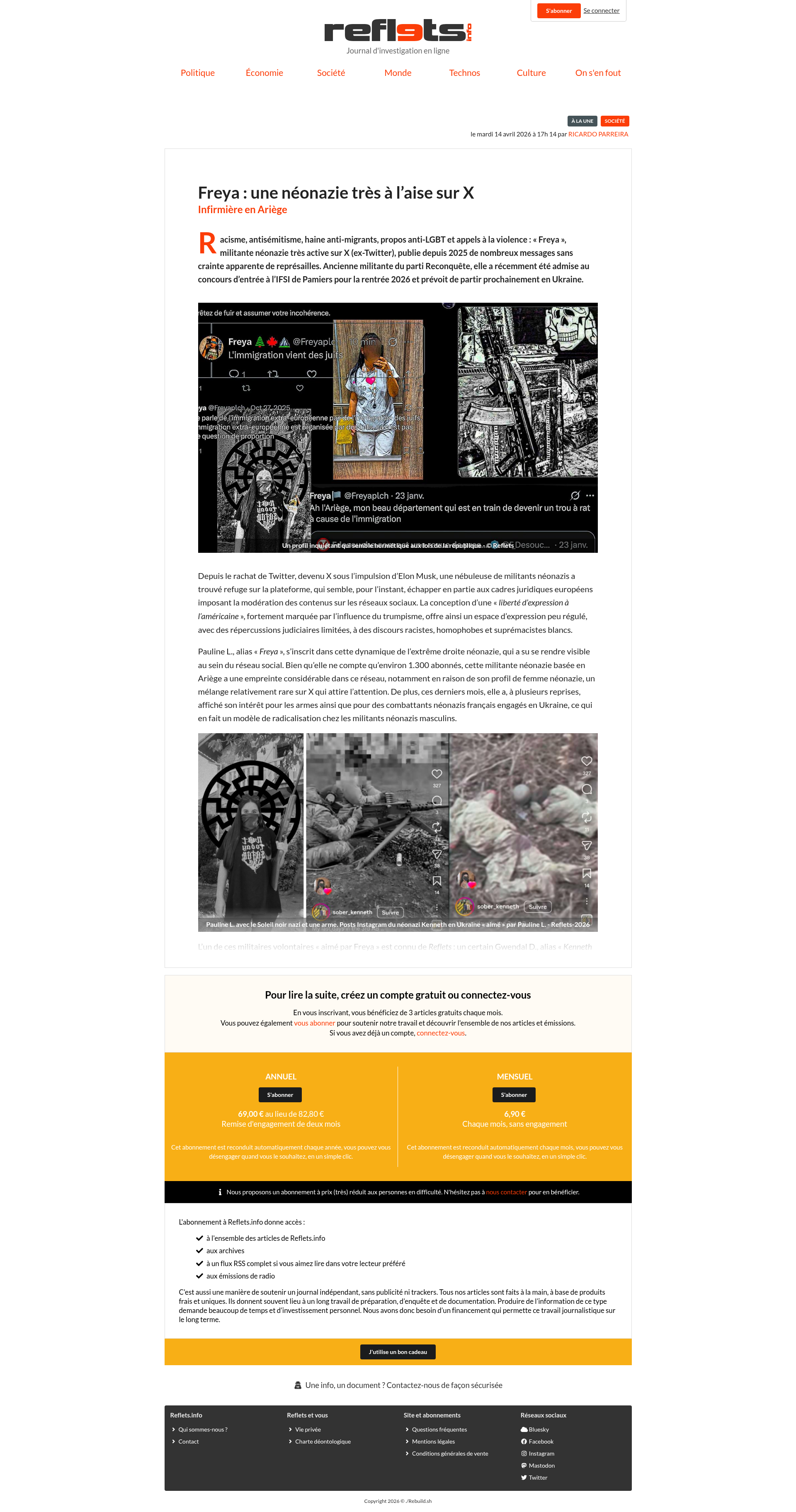 Freya : une néonazie très à l’aise sur X | Reflets.infoRacisme, antisémitisme, haine anti-migrants, propos anti-LGBT et appels à la violence : « Freya », militante néonazie très active sur X (ex-Twitter), publie depuis 2025 de nombreux messages sans crainte apparente de...PNGPDF