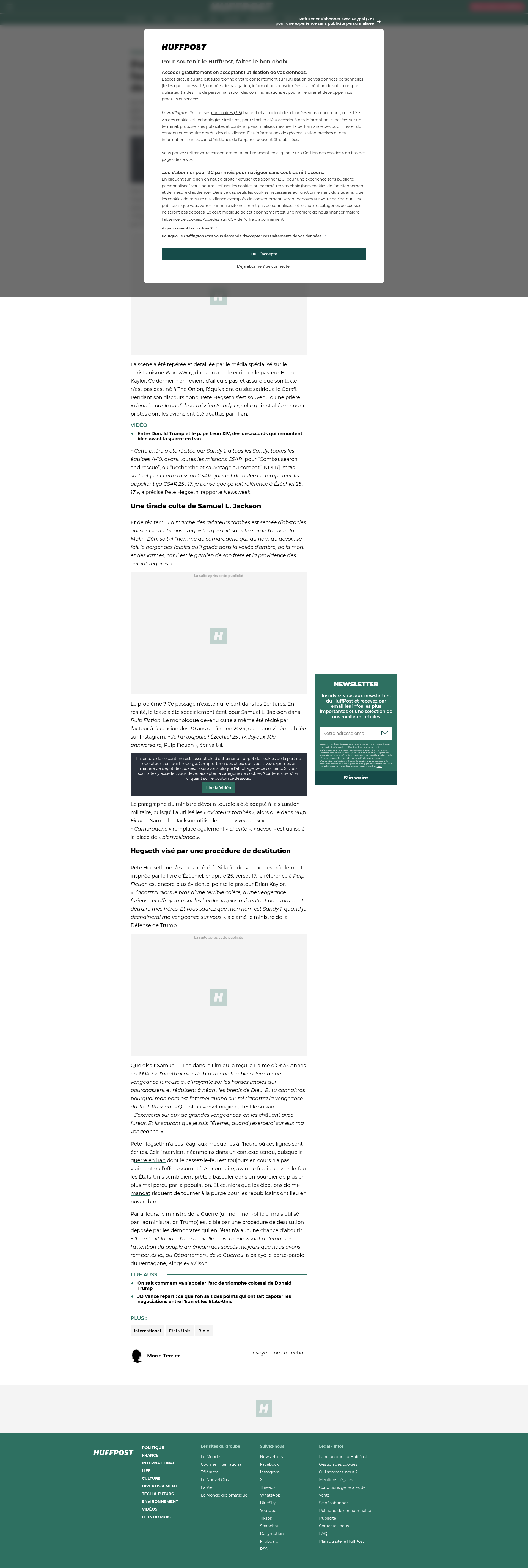 Pete Hegseth a-t-il cité un faux passage de la Bible tiré de « Pulp Fiction » ?Le ministre de la Défense de Donald Trump ne s’est pas rendu compte qu’il récitait le monologue culte de Samuel L. Lee dans le film de Quentin Tarantino.PNGPDF