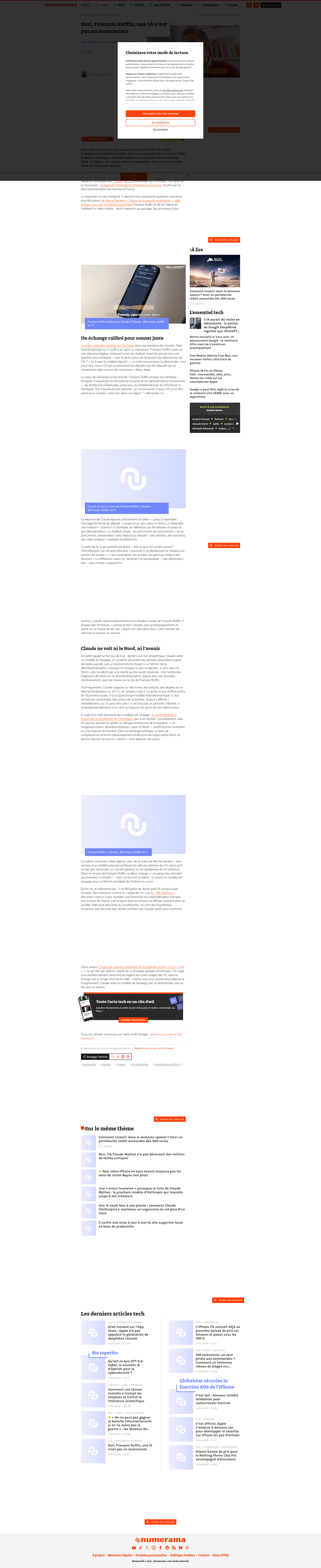 L'énorme erreur de François Ruffin face à l'intelligence artificielleAprès Bernie Sanders, c’est au tour de François Ruffin de mettre l’intelligence artificielle en scène. Dans une vidéo diffusée ce 14 avril 2026, le député interroge le chatbot Claude sur le traumatisme industriel du Nord. Problème : en croyant obtenir un diagnostic, l'élu ne fait qu'écouter l'écho de son proprePNGPDF