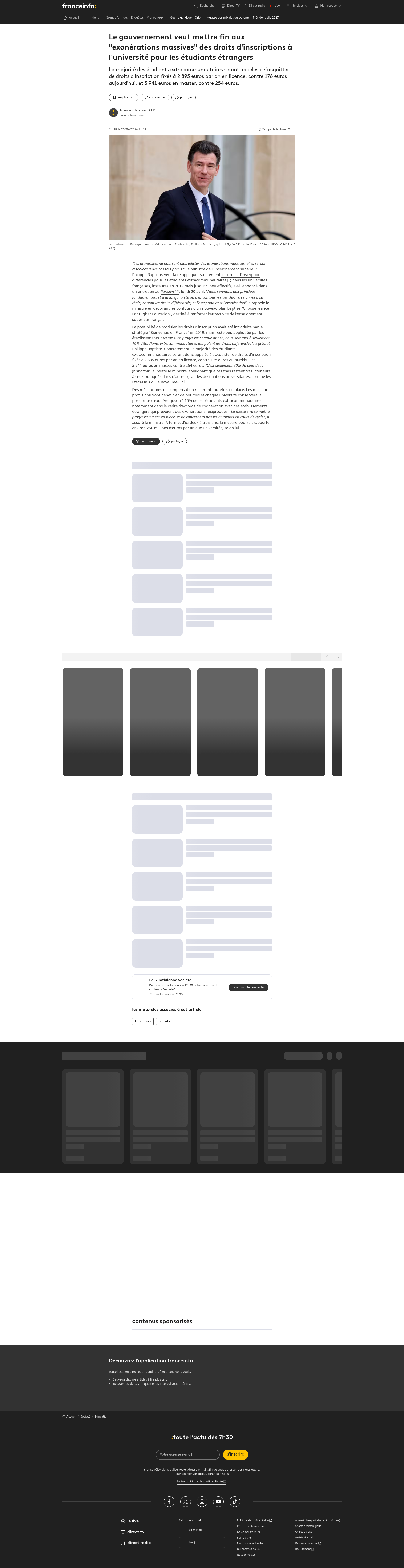 Droits d’inscription pour les étudiants étrangers : « Les universités ne pourront plus édicter des exonérations massives »EXCLUSIF. Philippe Baptiste annonce dans nos colonnes que 90 % des étudiants extracommunautaires devront payer le prix fort pour s’inscrire PNGPDF